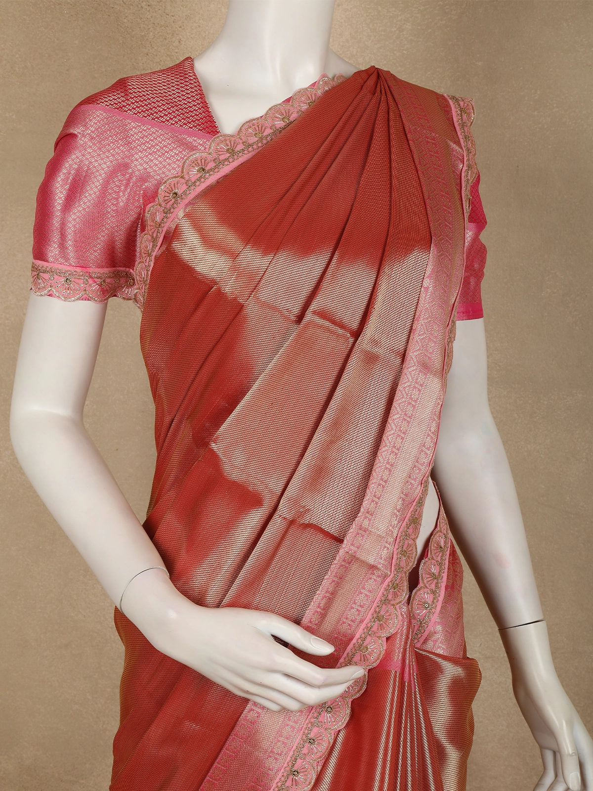 Ideal for weddings, receptions, festive celebrations, and special occasions, this saree pairs effortlessly with statement jewellery for a regal ensemble or minimal accessories for an understated, elegant look. A timeless addition to your ethnic wardrobe, this tissue silk saree captures sophistication in every fold.
