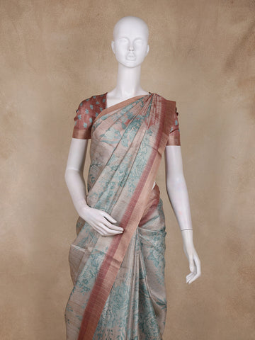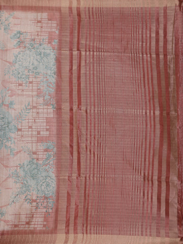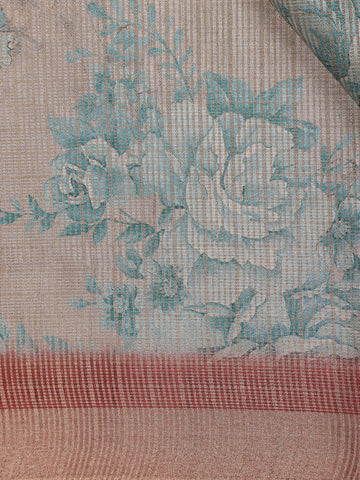 Champagne Beige Floral Design Tissue Silk Saree with Zari Border