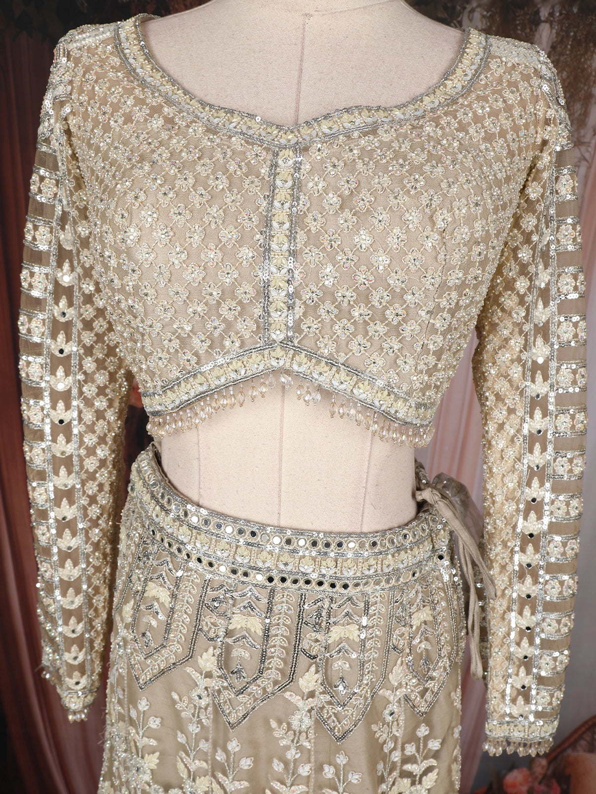 This Champagne Beige creation is the epitome of grandeur, making it a perfect choice for wedding receptions, cocktail events, and festive occasions where you want to radiate understated luxury.