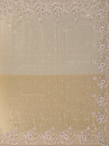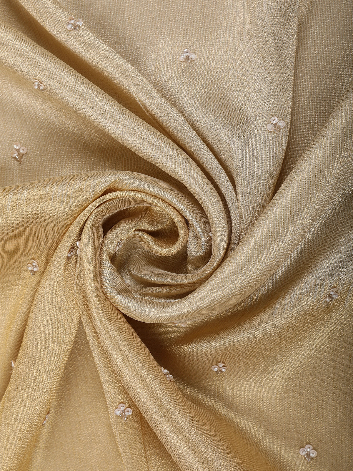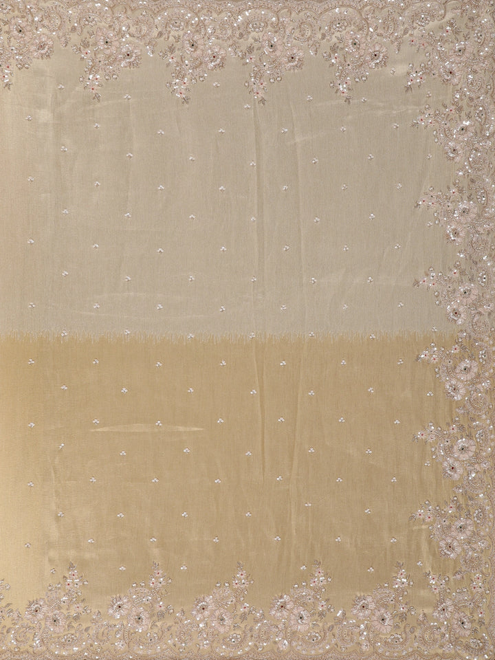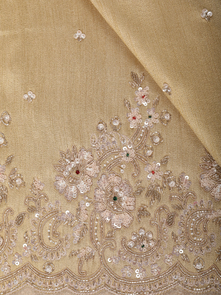 Champagne Gold Sequins and Beads Embroidered Tissue Banarasi Saree