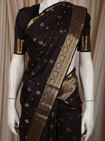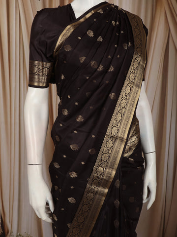 Classic Black Butta Zari Woven Design Pure Kanchipuram Silk Saree with Zari Border