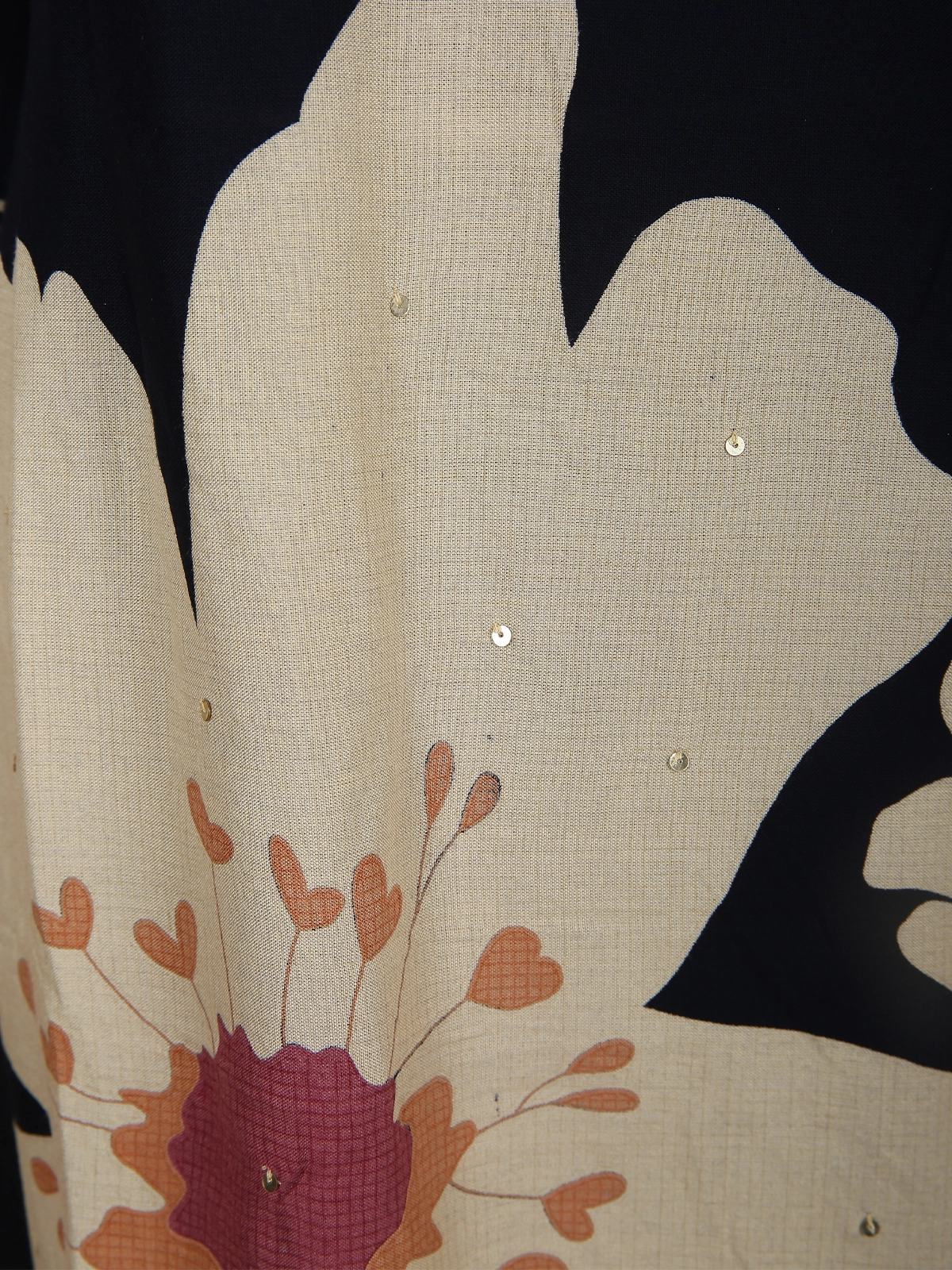 Timeless, bold, and effortlessly stylish, this Classic Black Cotton Co-ord Set is a wardrobe essential designed for modern elegance. The deep black base creates a sleek silhouette, while the statement oversized floral placement print in soft ivory with blush and rust accents adds a striking artistic touch.