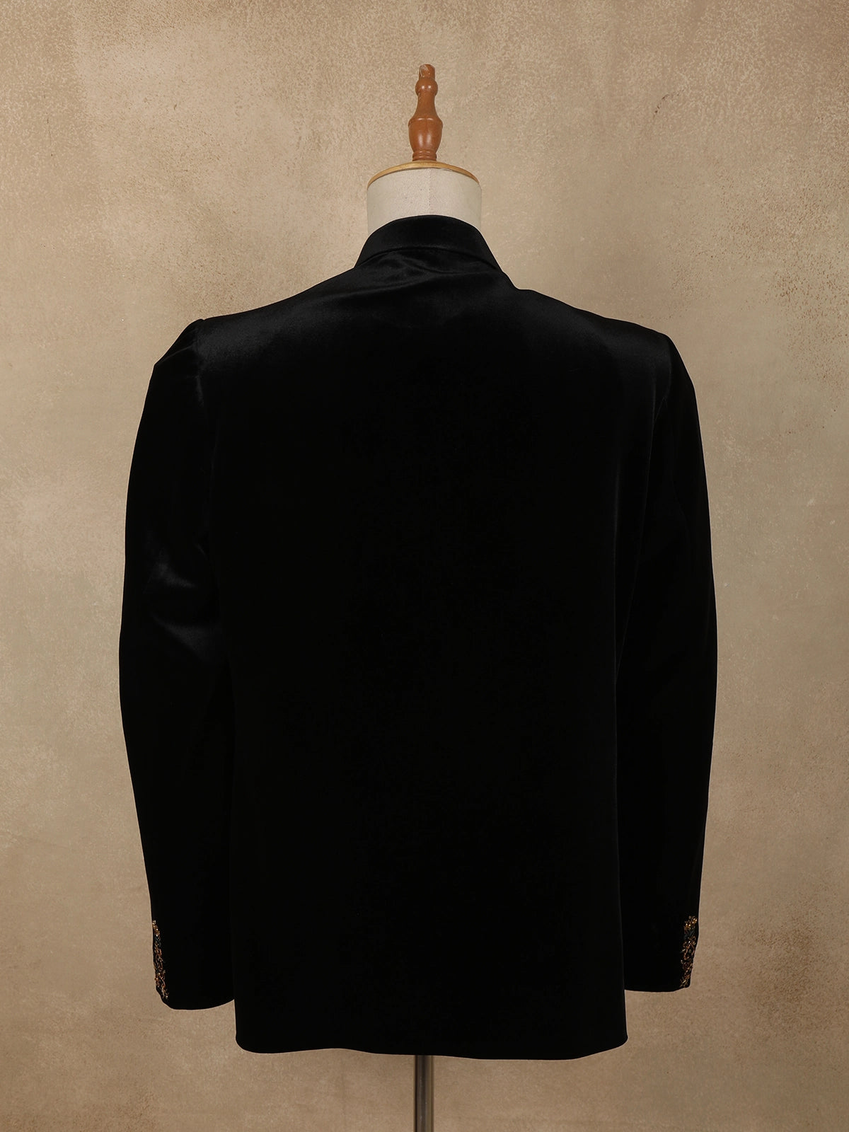 Classic Jet Black Antique Gold and Deep Teal Accents Design Velvet Men's Suit