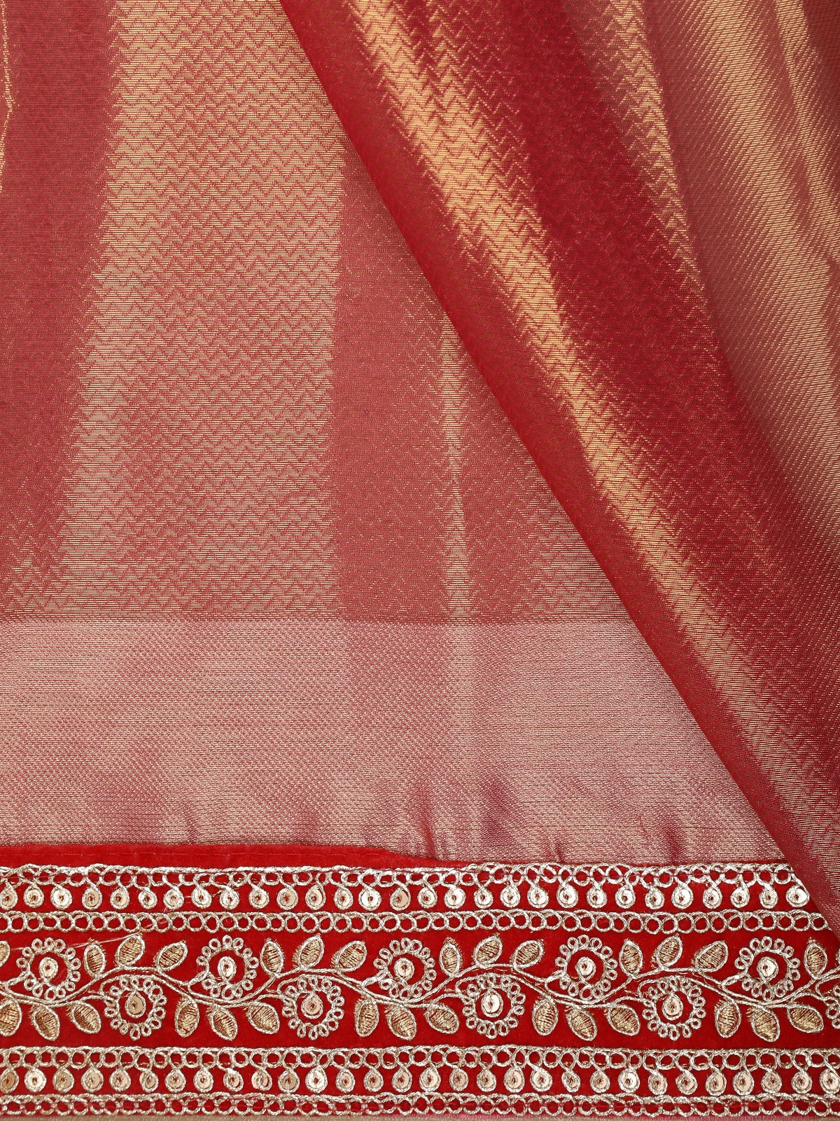 Classic Red Geometric Zari Woven Design Tissue Designer Saree with Sequins Border