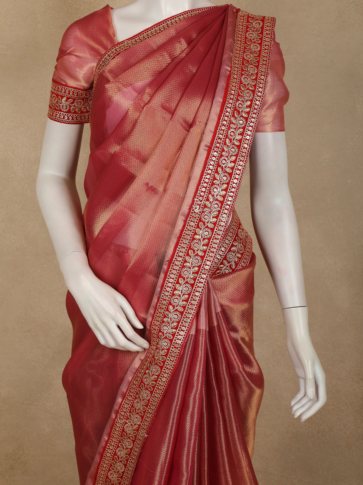 Lightweight yet luxurious in drape, this tissue saree offers a fluid fall and an effortless festive charm. Perfect for weddings, receptions, festive celebrations, and grand occasions, it pairs beautifully with statement jewellery for a look that is both regal and unforgettable.