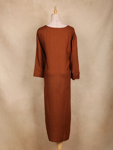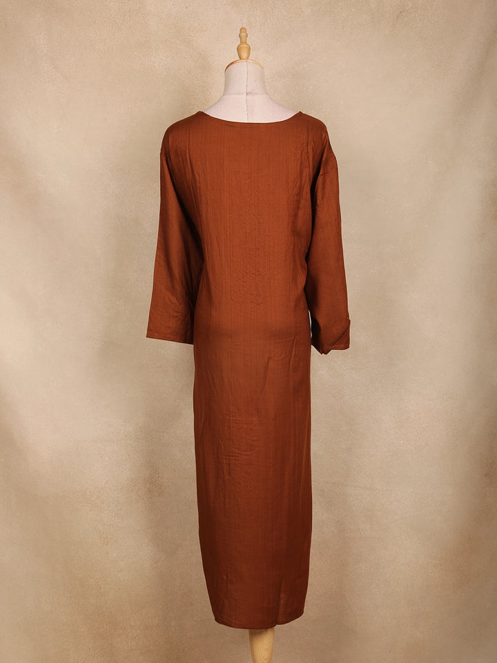Coffee Brown Floral Embroidered Cotton Kurti