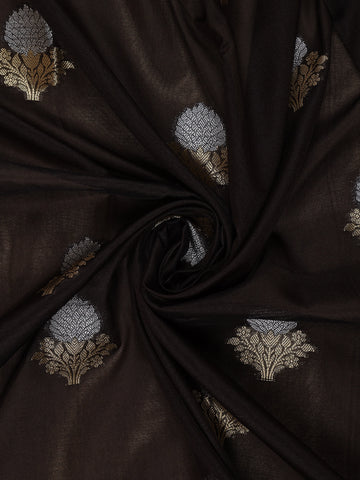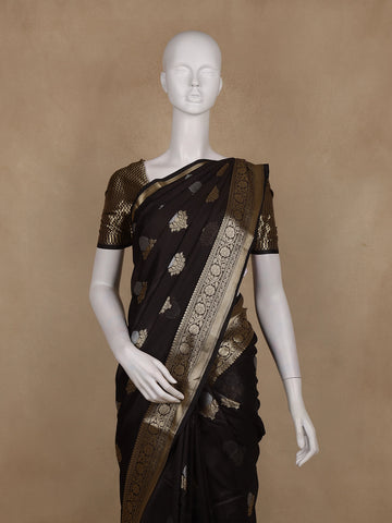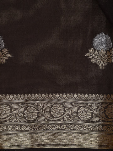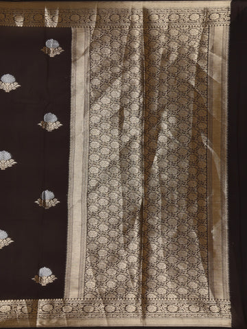 Coffee Brown Floral Motif Design Semi Banarasi Silk Saree