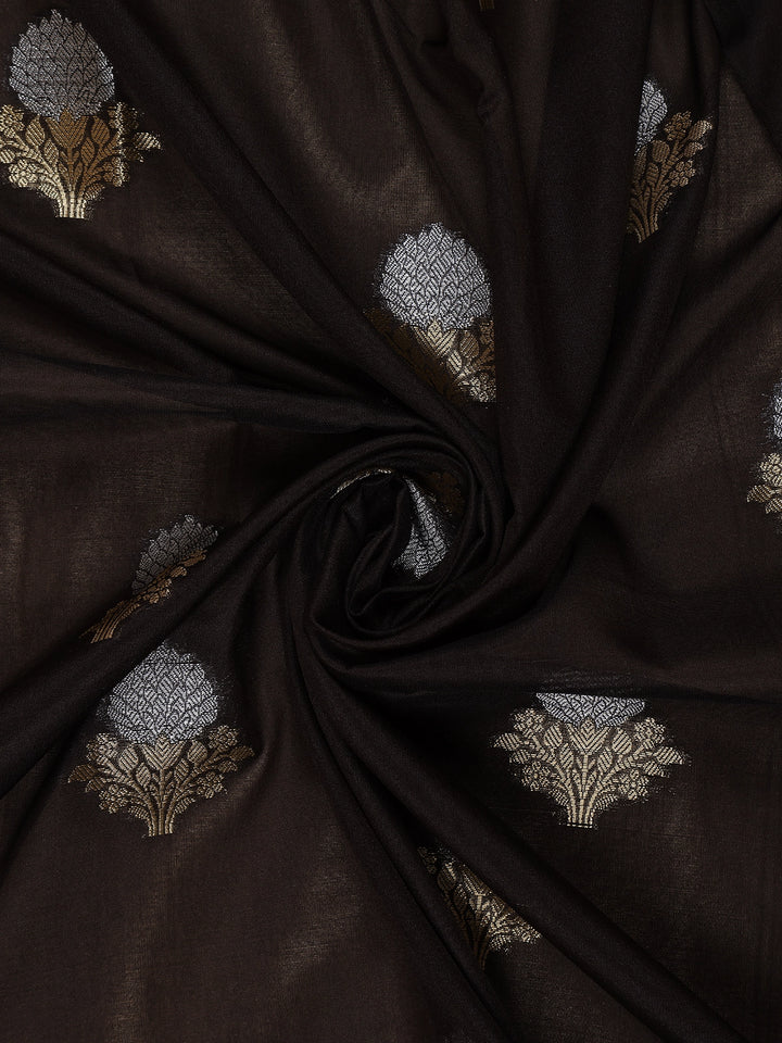 Step into graceful sophistication with this Coffee Brown Floral Motif Design Semi Banarasi Silk Saree, a perfect blend of tradition and elegance. Crafted from lustrous semi Banarasi silk, the saree features intricate floral motifs woven in zari, exuding a rich and regal appeal.