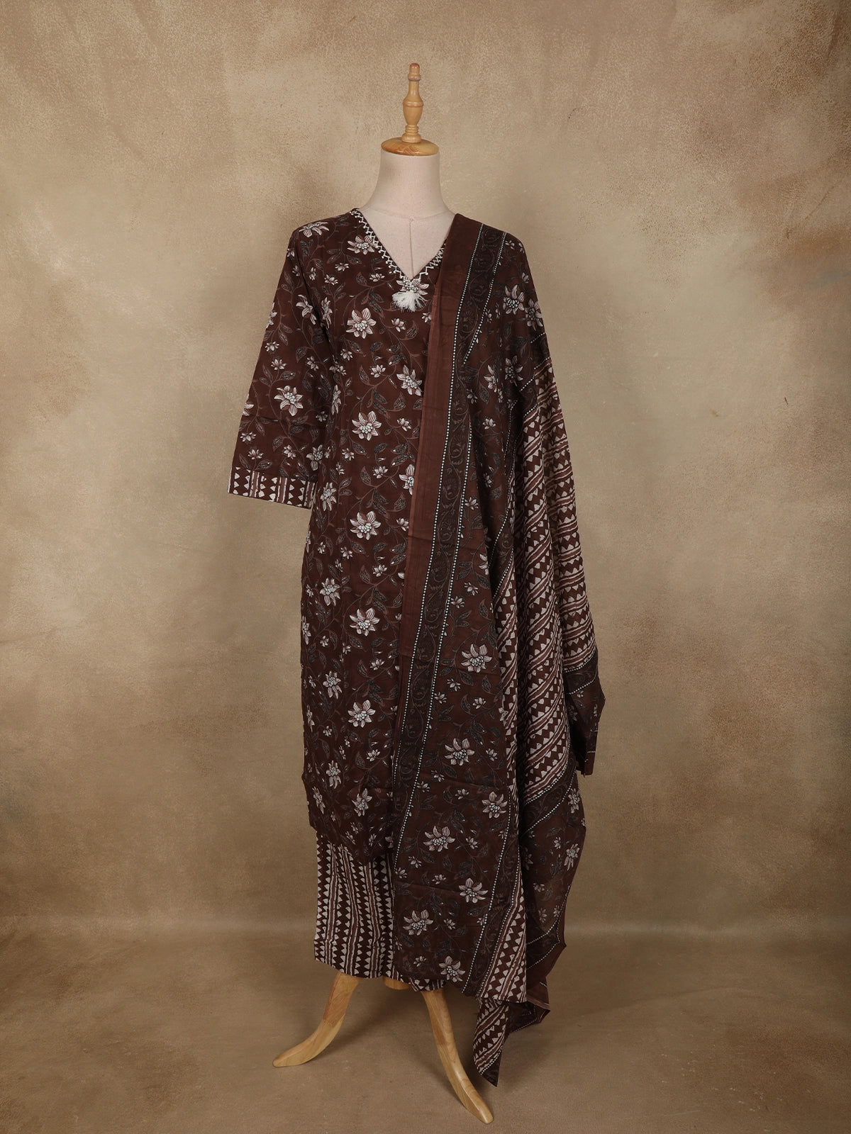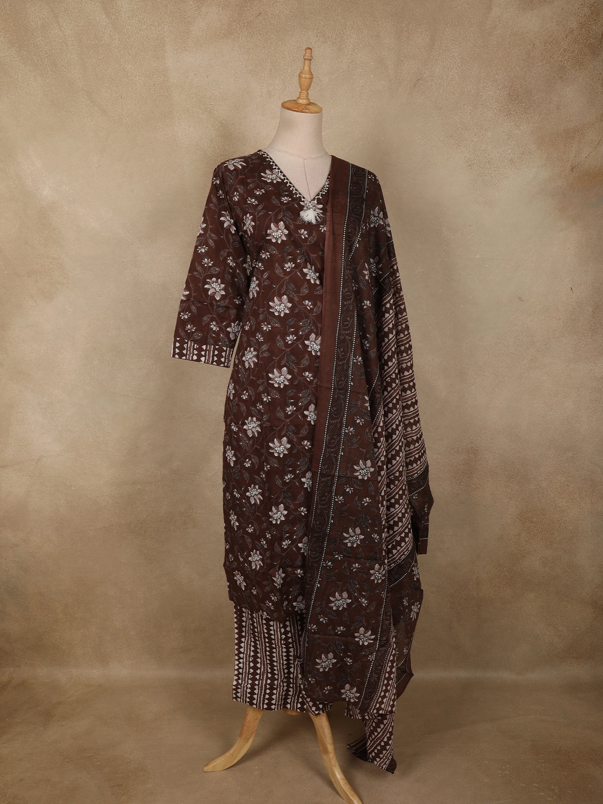 Ideal for everyday elegance, office wear, festive daytime gatherings, and casual ethnic occasions, this coffee brown cotton salwar suit blends comfort, tradition, and subtle style into one versatile outfit.