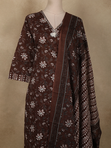 This graceful salwar suit is designed in a deep coffee brown hue, lending a warm, earthy elegance that feels timeless and refined. Crafted from soft, breathable cotton, the fabric offers all-day comfort while maintaining a polished ethnic look.