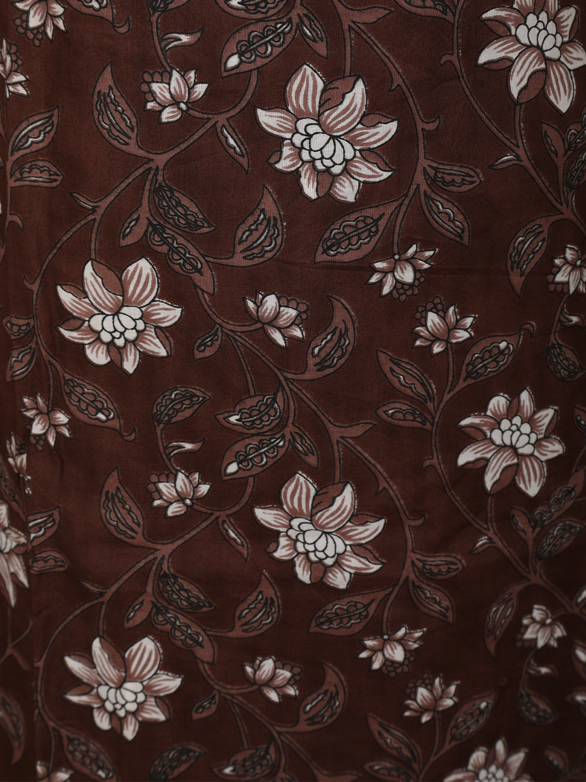 The kurta is adorned with delicate floral prints in subtle ivory and muted beige tones, creating a beautiful contrast against the dark base. The thoughtfully placed motifs add visual depth without overpowering the design. A neatly finished neckline with minimal detailing enhances the overall sophistication, while the straight, flattering silhouette ensures effortless wearability.