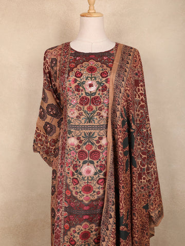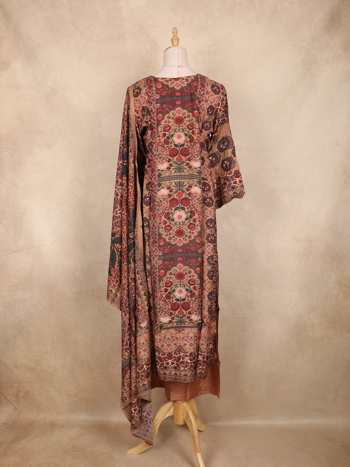 Coffee Brown Kashmiri Floral Printed Design Crepe Straight Cut Salwar Suit with Dupatta