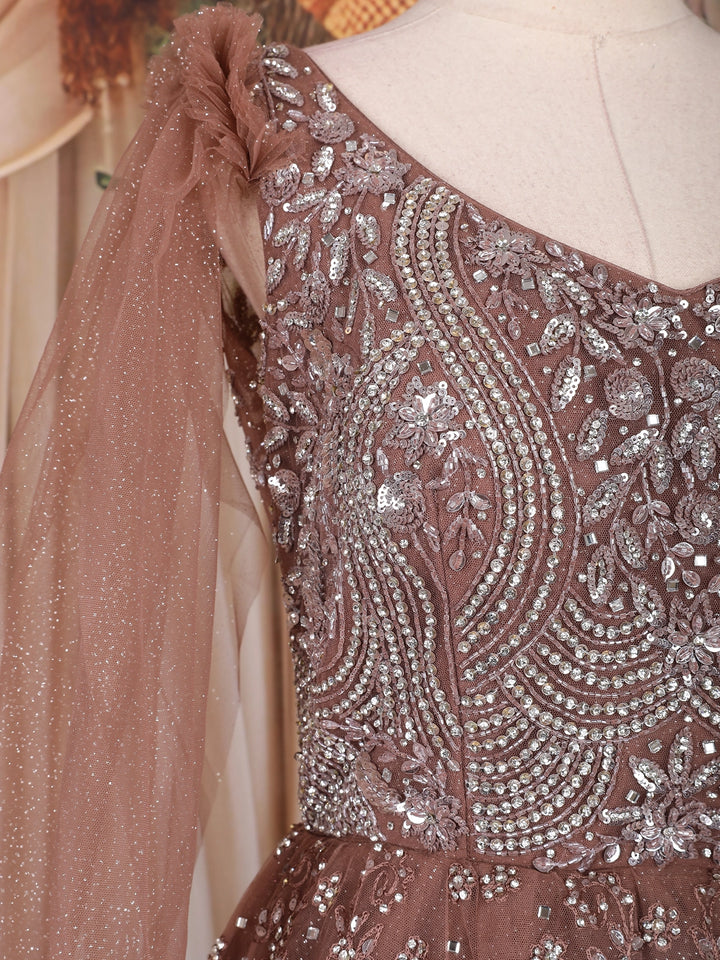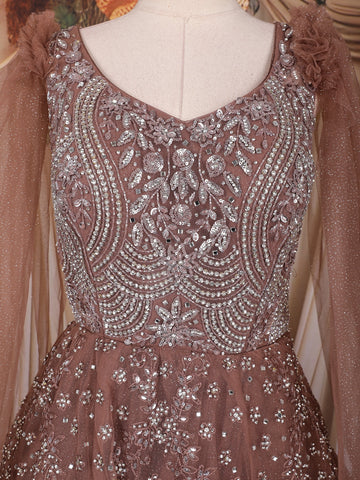Copper Sequins and Beads Embroidered Design Net Gown