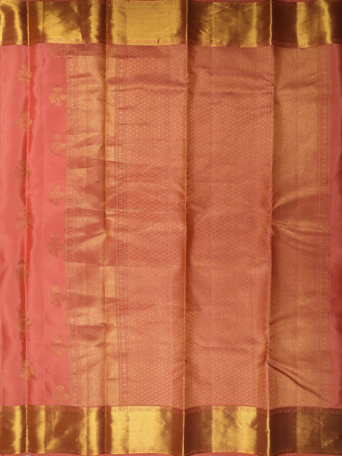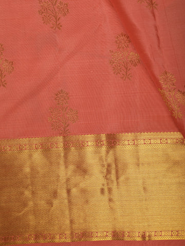 Coral Peach Floral Butta Zari Woven Design Pure Kanchipuram Silk Saree with Zari Border