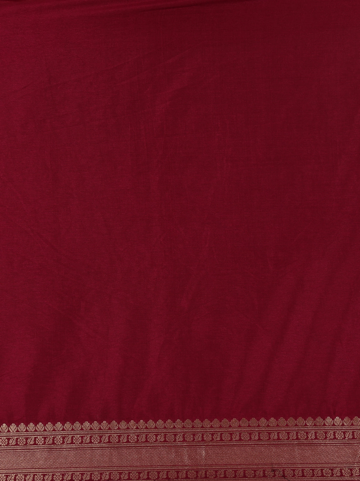 The rich contrast border in maroon with intricate zari work enhances the saree’s charm, giving it a royal finish that stands out on any occasion. Crafted from a lightweight silk blend, it offers a graceful drape with a luxurious sheen, ensuring comfort while elevating your festive glam.