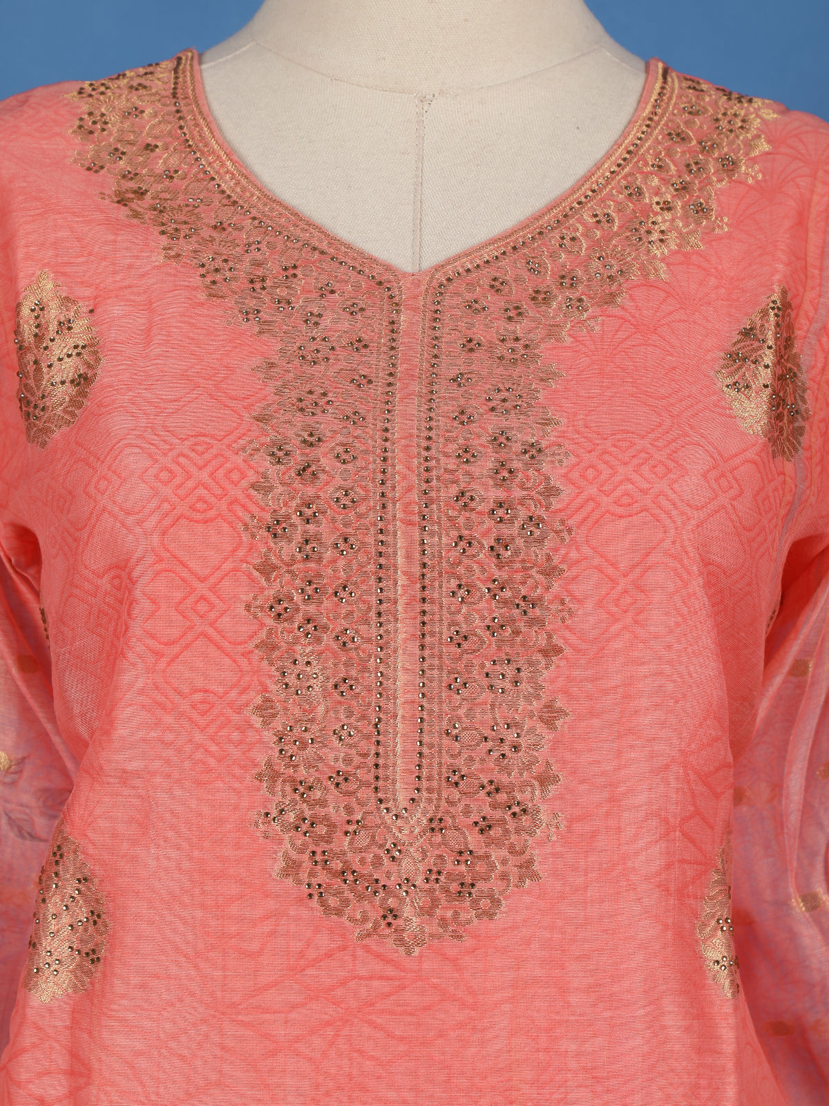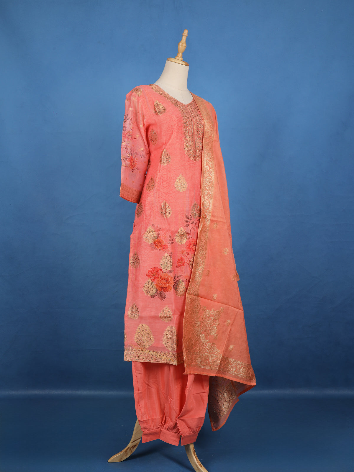 Coral Pink Zari Embroidered Banarasi Salwar Suit