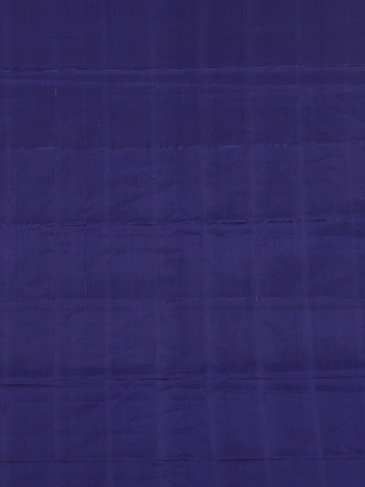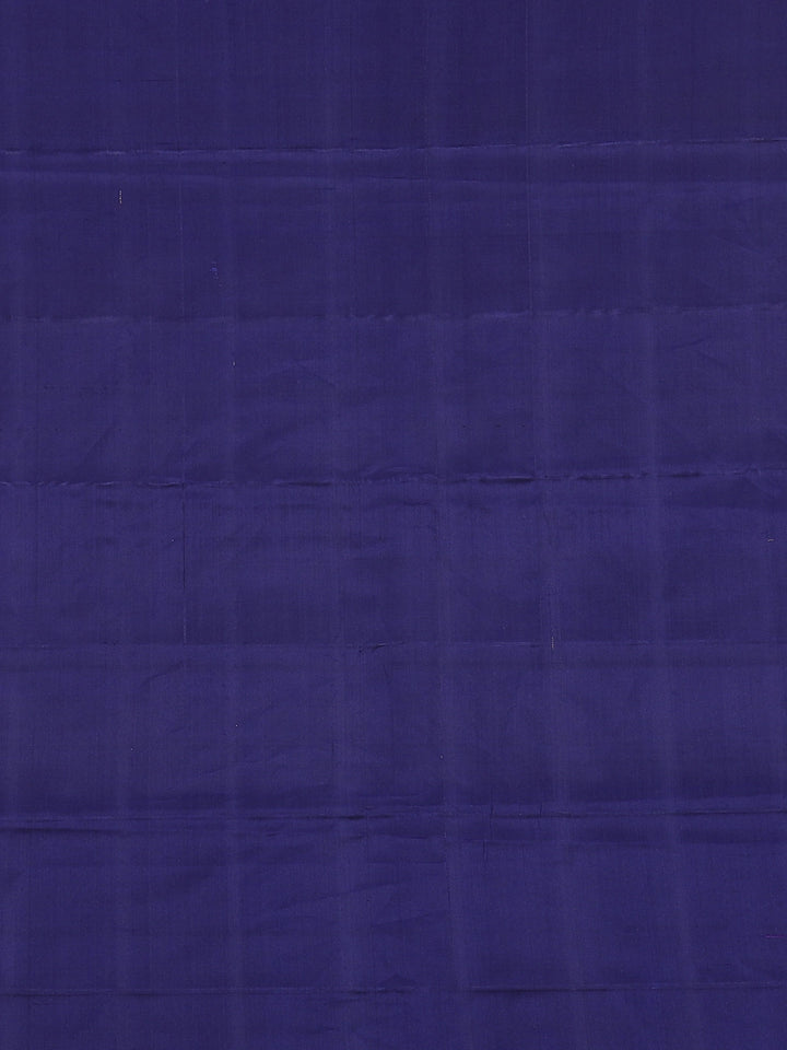 The highlight of this saree is the Contrast Royal Blue Pallu, adorned with exquisite zari floral and geometric motifs that add depth and grandeur. The contrast blouse in matching royal blue complements the saree beautifully, offering a classic heritage combination.