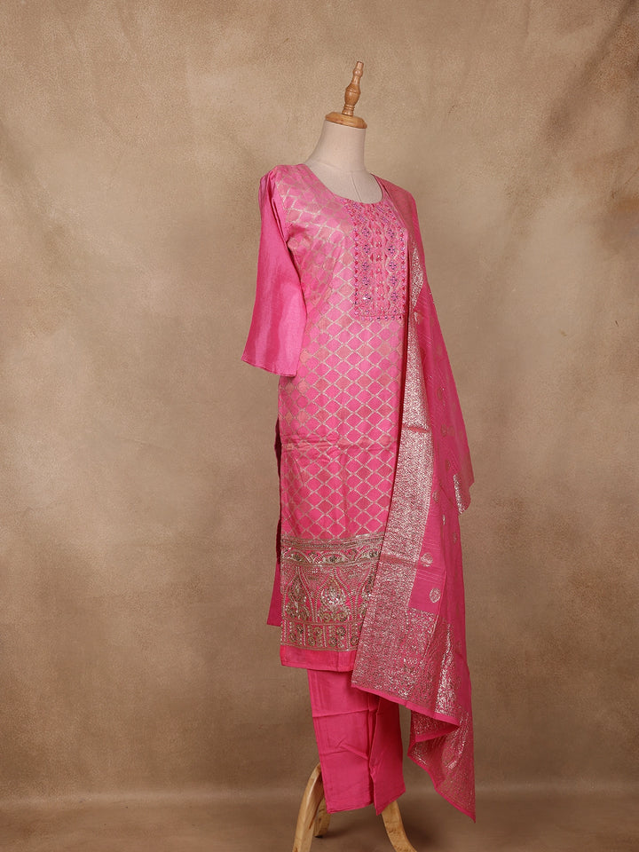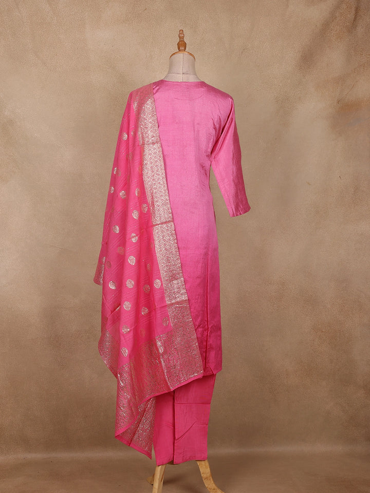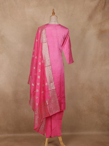 Cotton Candy Colour Zari Woven Silk Salwar Suit with Dupatta