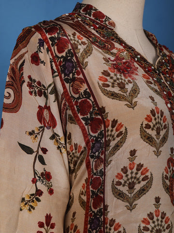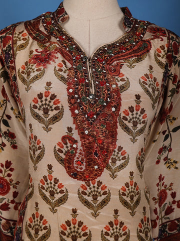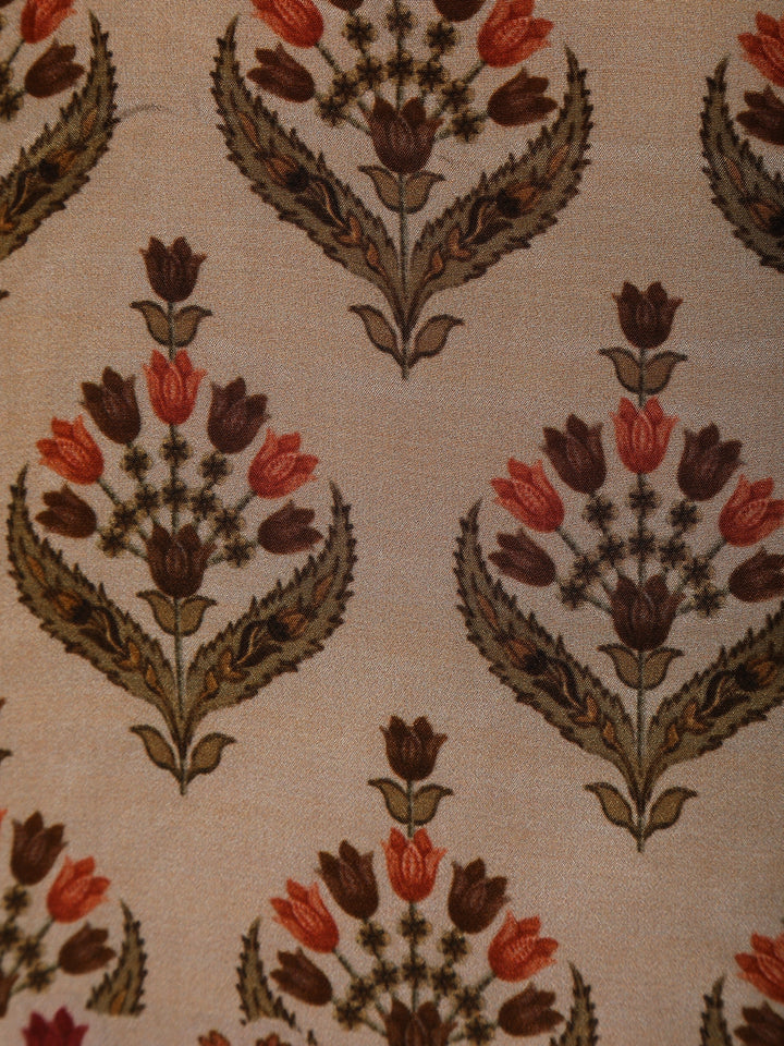 Cream Floral Design Semi Silk Salwar Suit