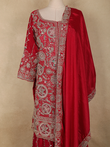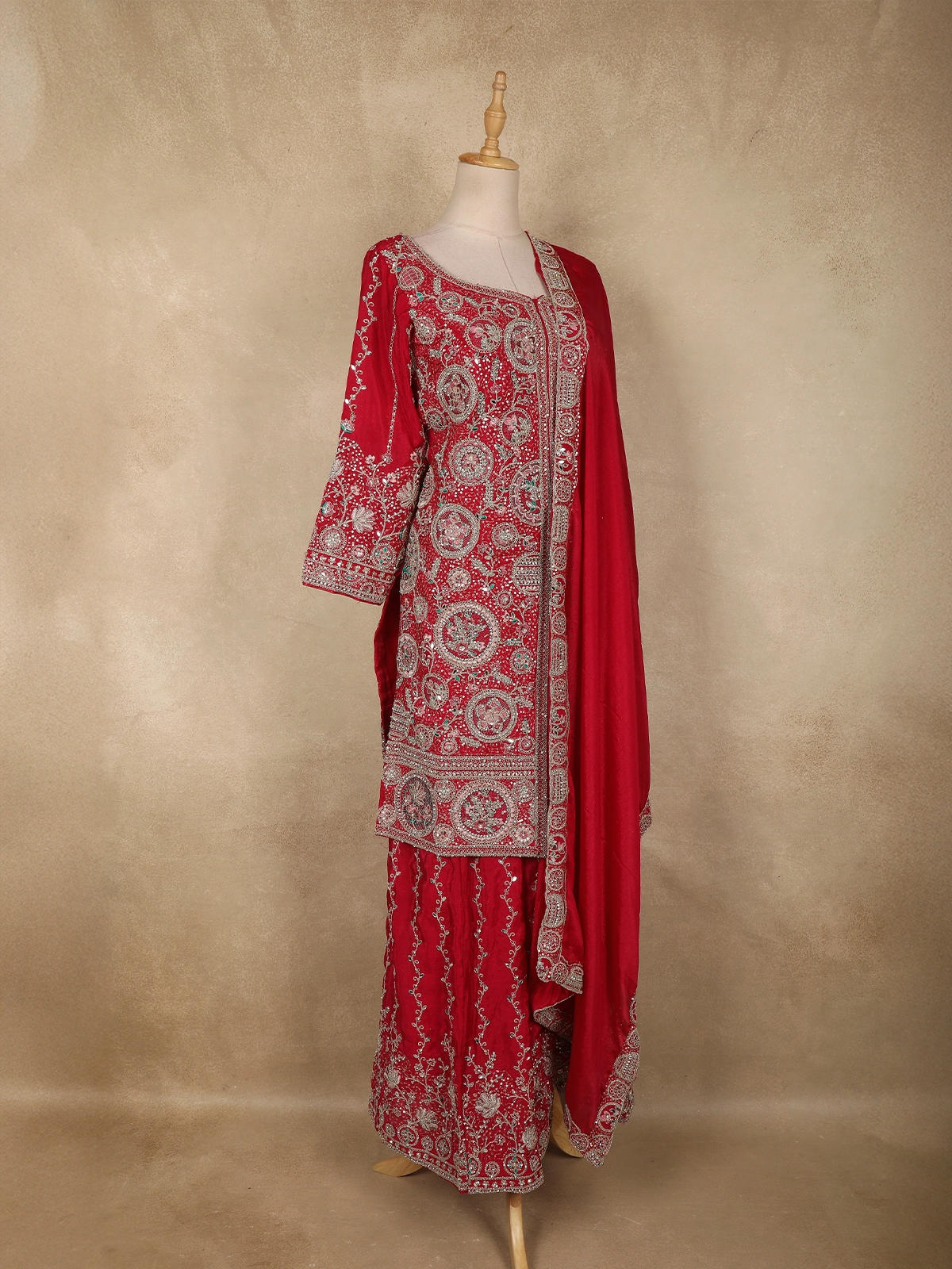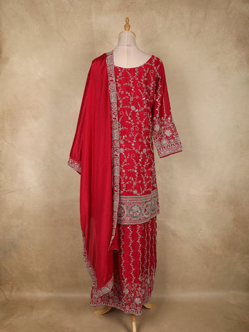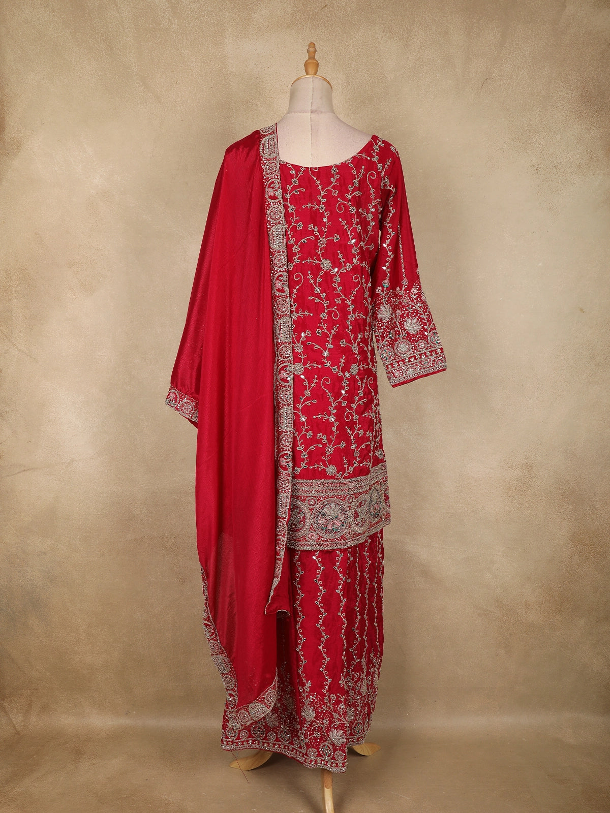 Dark Pink Floral Sequins and Beads Embroidered Design Palazzo Set with Dupatta