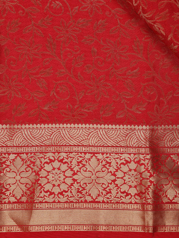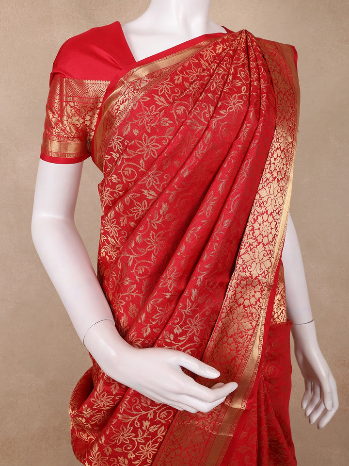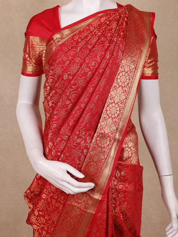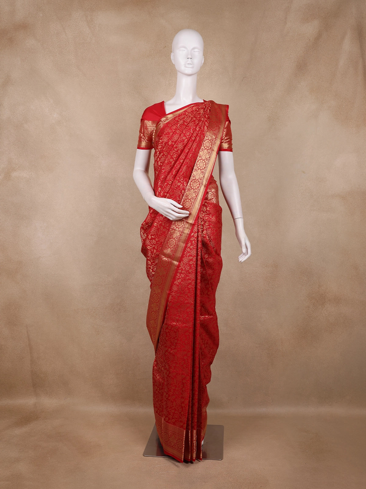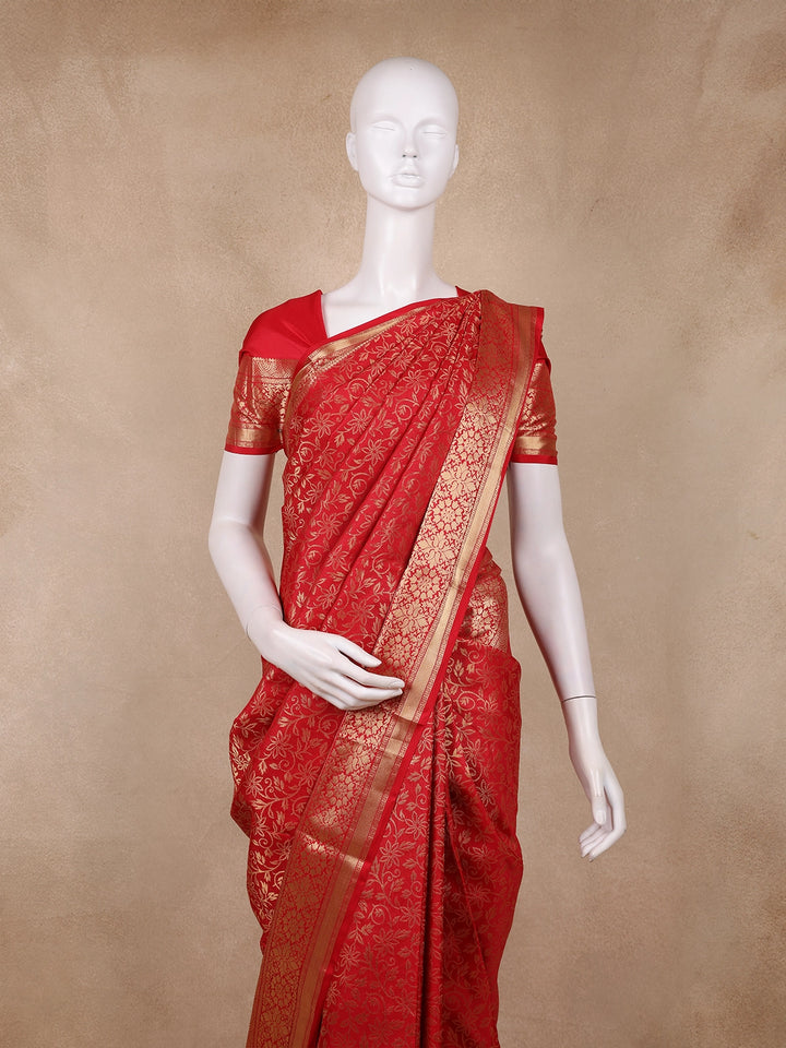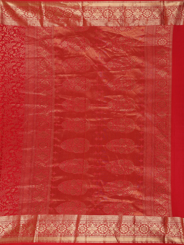Crimson Red Floral Zari Woven Design Kanchipuram Silk Saree
