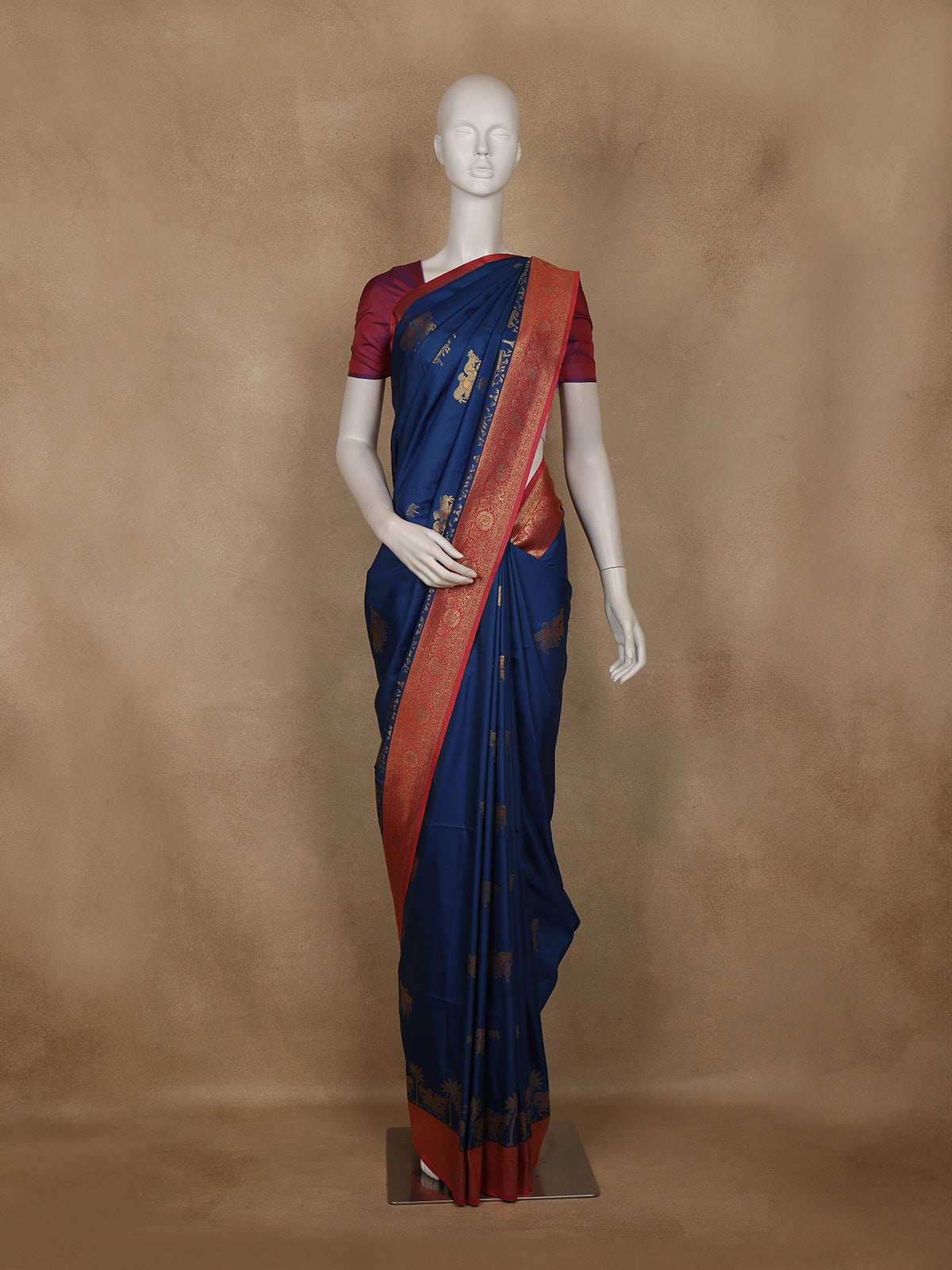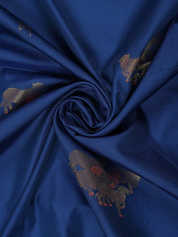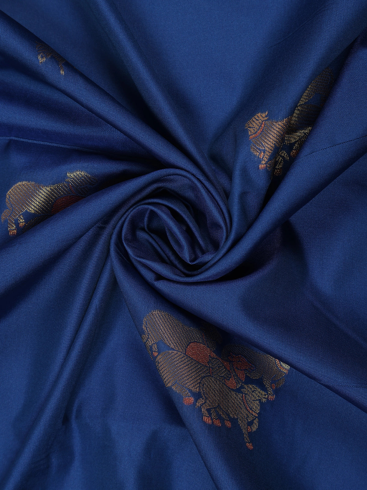Dark Blue Cow Motif Woven Semi Soft Silk Saree