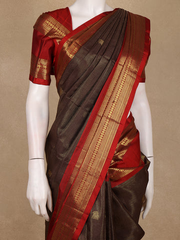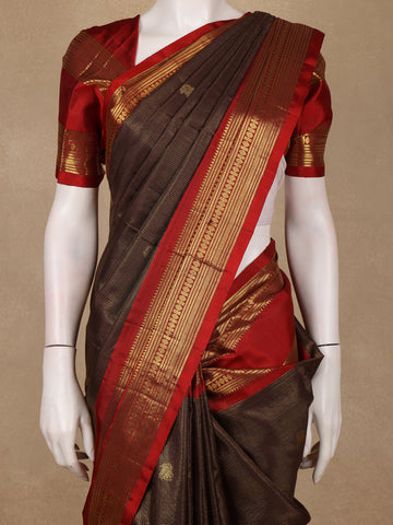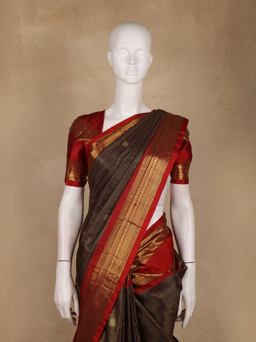 Dark Brown Butta Woven Design Pure Kanchipuram Silk Saree