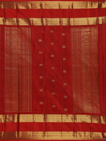 The striking Red contrast blouse and pallu create a bold and festive combination that perfectly balances richness with vibrance. Crafted from the finest pure Kanchipuram silk, this drape ensures a graceful fall, luxurious sheen, and unmatched durability — a true heirloom piece for generations to treasure.