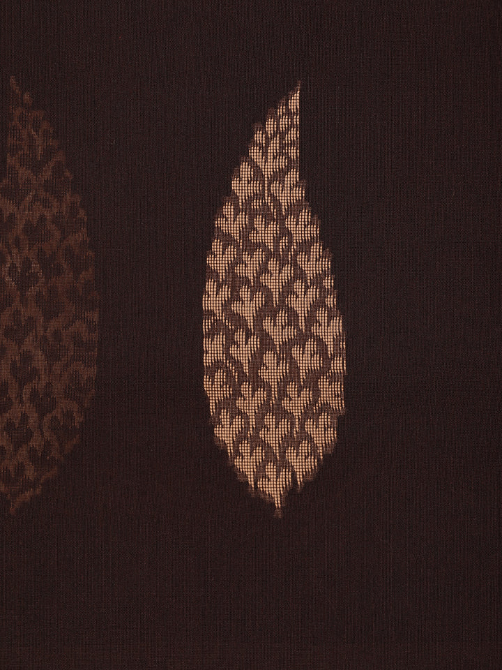 Dark Brown Leaf Woven Design Cotton Saree with Self Border