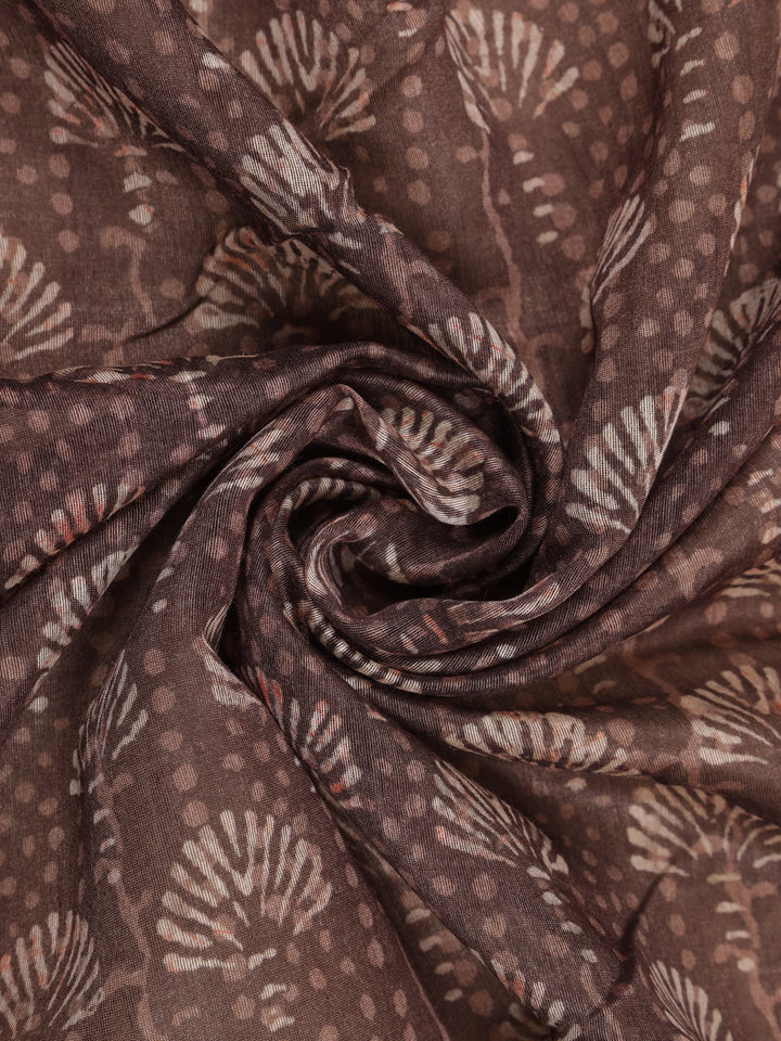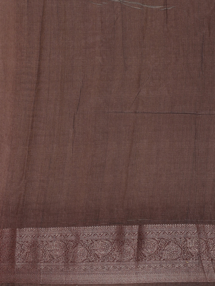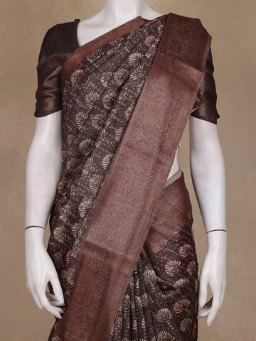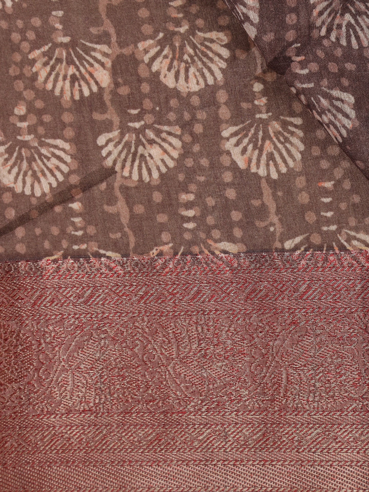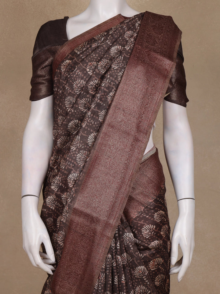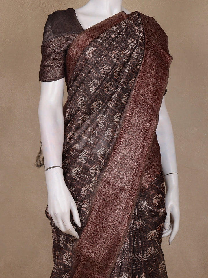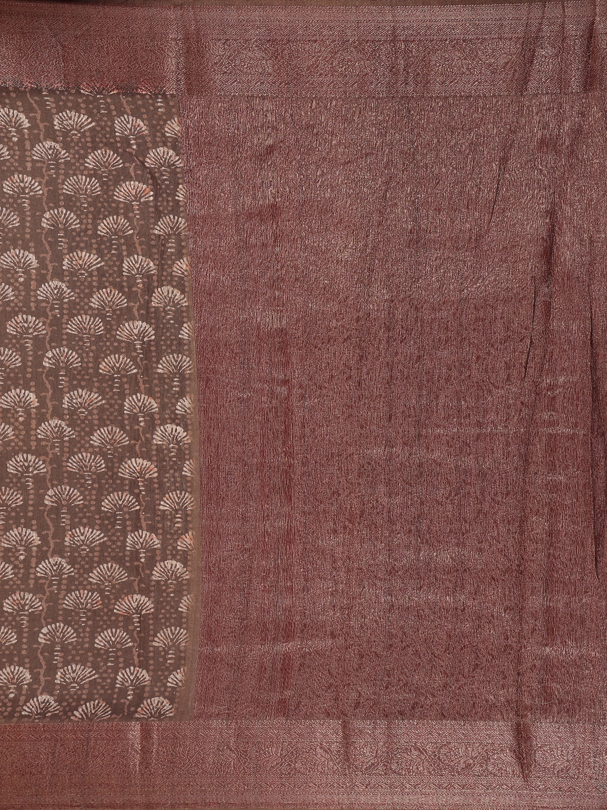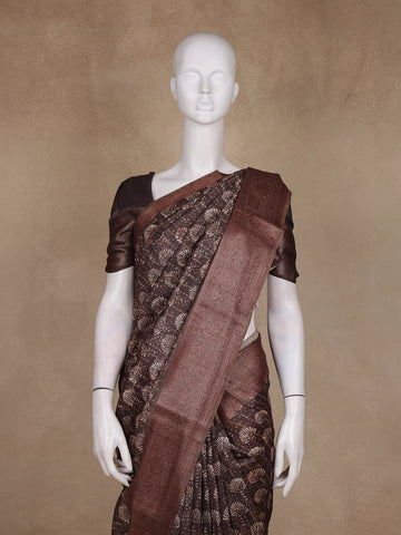 Dark Coffee Brown Butta Printed Chanderi Silk Saree