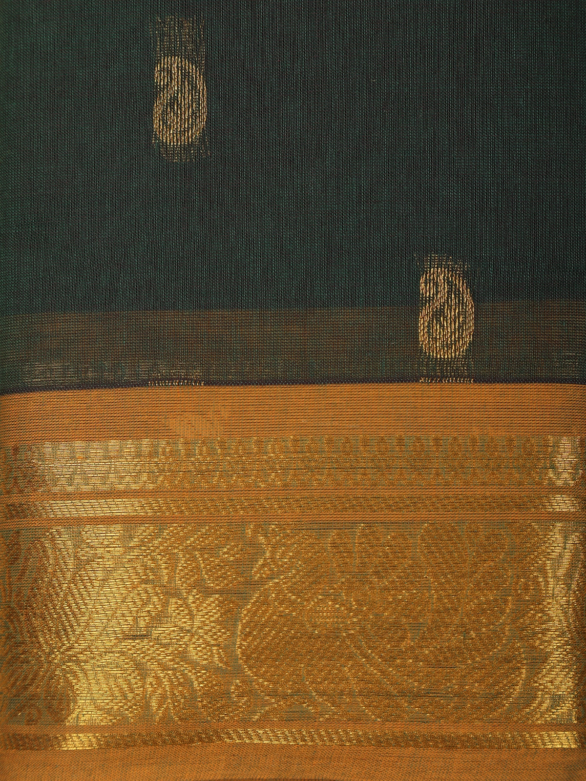 Dark Green Butta Woven Design Cotton Saree with Contrast Border