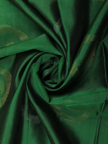 Step into timeless elegance with this Dark Green Butta Zari Woven Design Pure Kanchipuram Silk Saree, a perfect expression of traditional charm and refined craftsmanship. Crafted from luxurious pure Kanchipuram silk, the saree features a rich dark green base highlighted with a subtle circular butta motif woven in fine gold zari, adding depth and graceful detailing to the body.