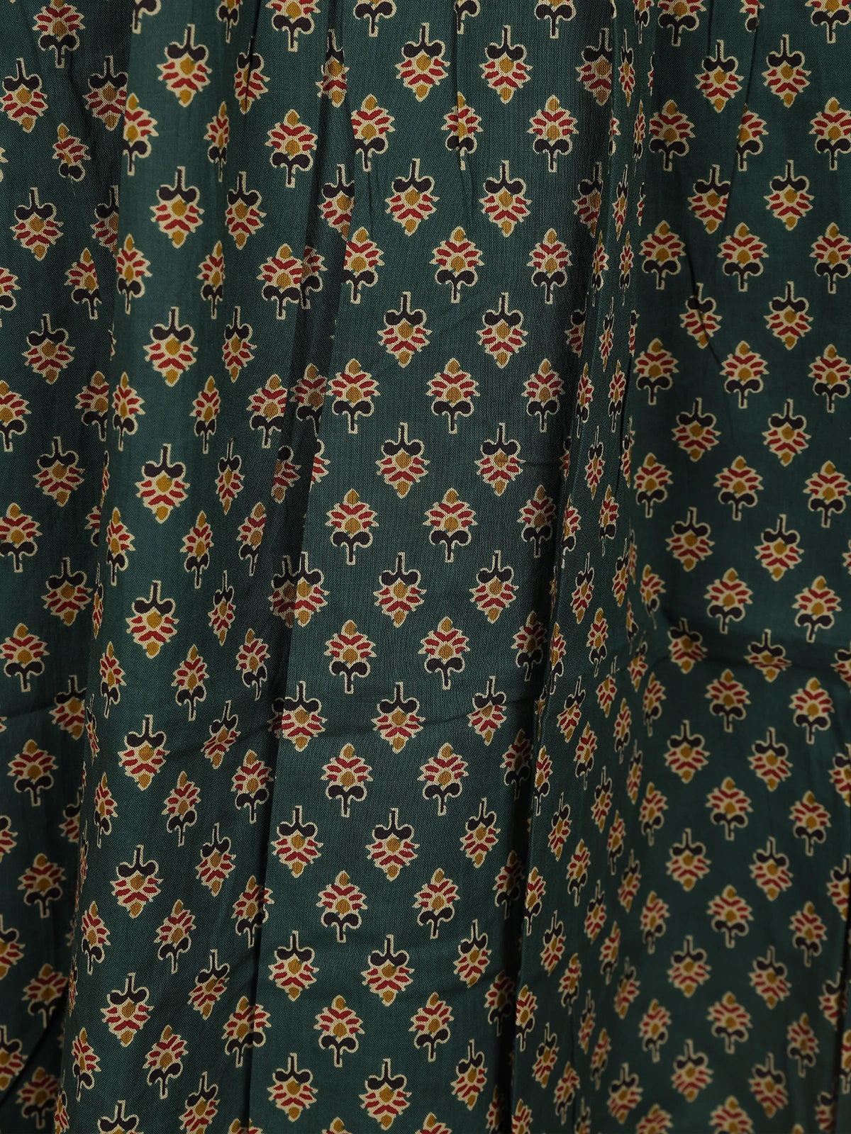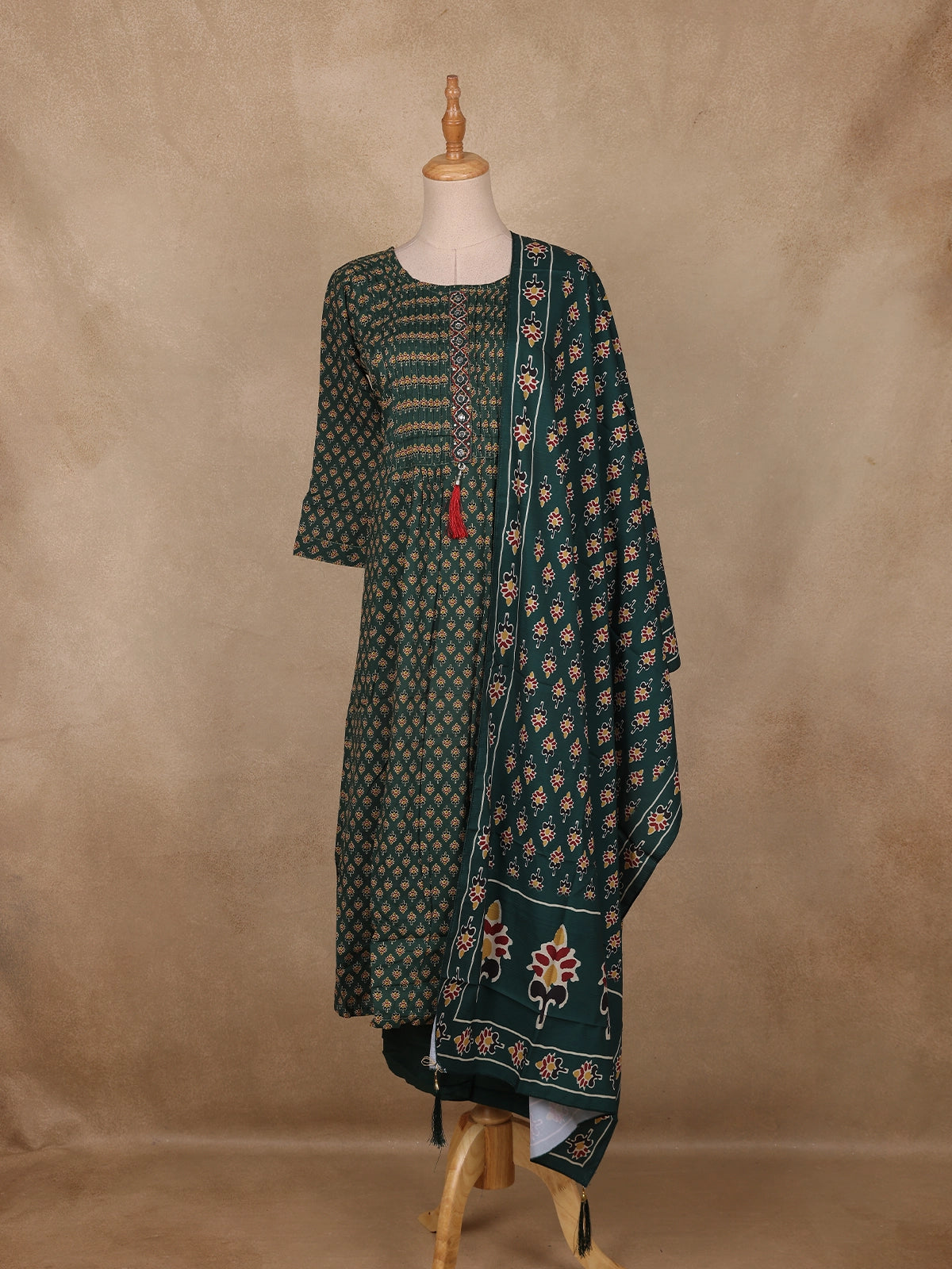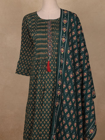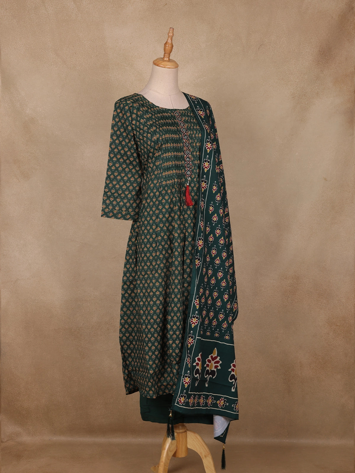 Dark Green Floral Printed Cotton Salwar Suit with Dupatta