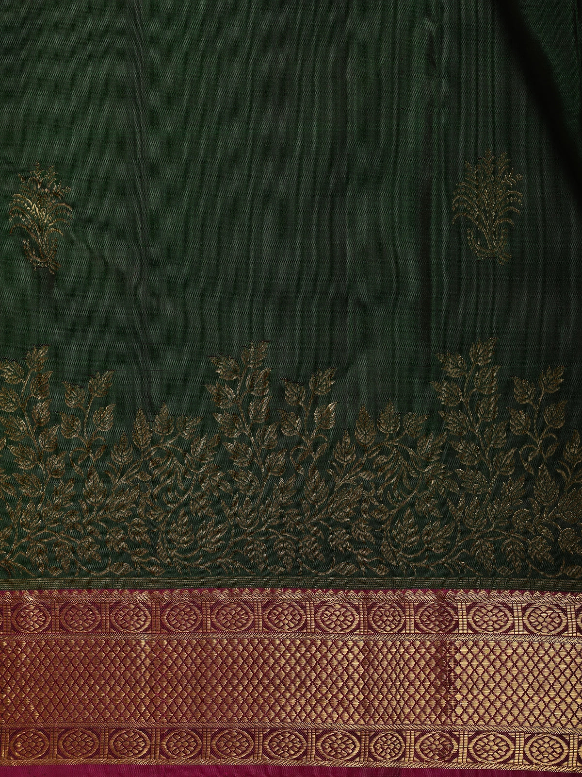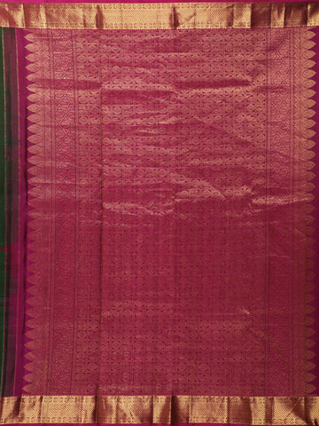 Dark Green Floral Woven Pure Kanchipuram Silk Saree with Contrast Pink Zari Border