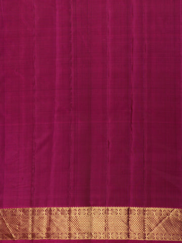 Accentuated by a striking contrast pink zari border, the saree showcases classic Kanchipuram craftsmanship with finely detailed zari weaving that elevates its festive charm. The luxurious silk fabric offers a rich sheen and structured drape, making it a perfect choice for weddings, bridal occasions, temple ceremonies, and grand celebrations.