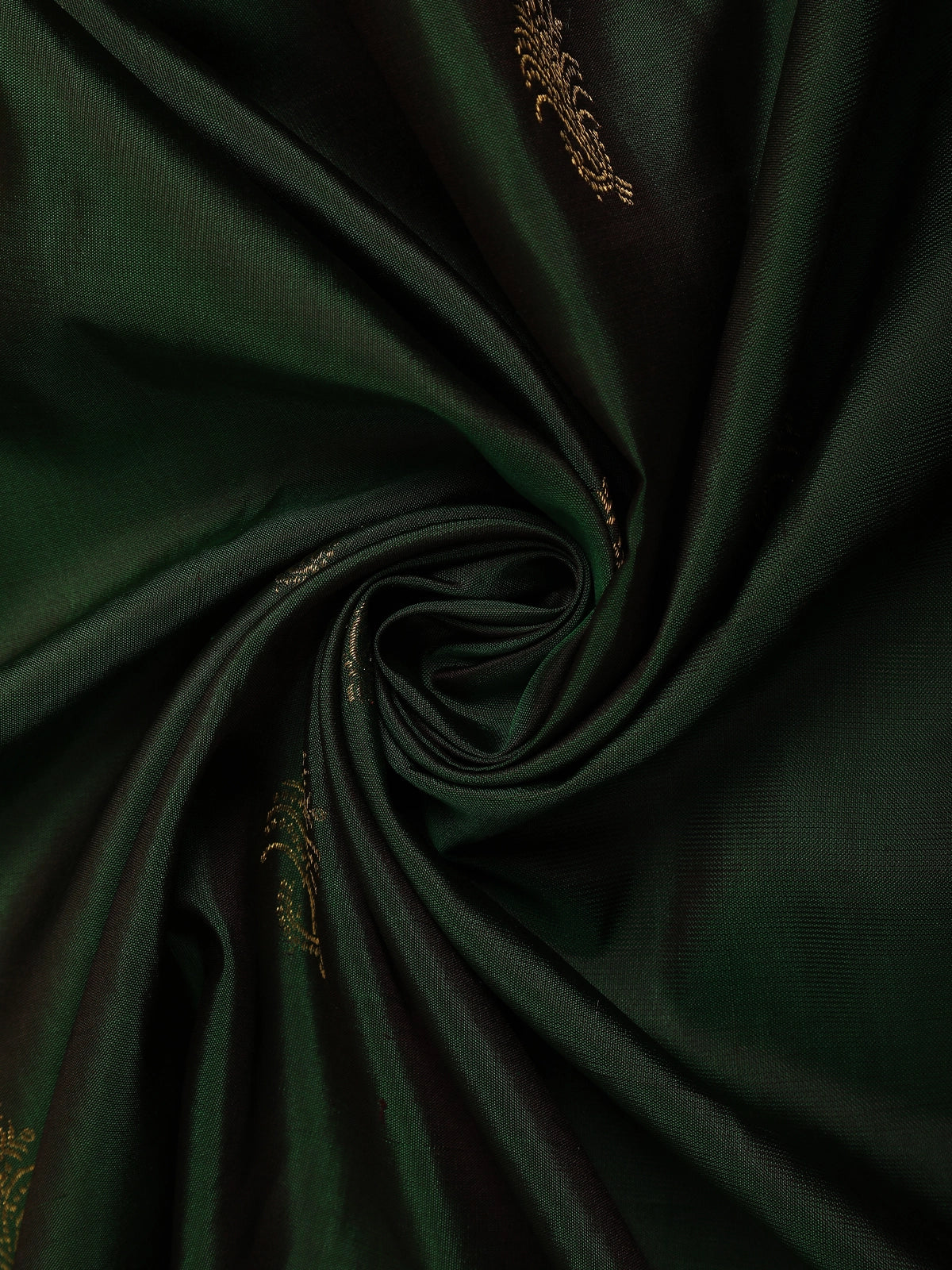 Embrace timeless elegance with this exquisite Dark Green Pure Kanchipuram Silk Saree, beautifully enhanced with intricate floral woven motifs across the body. The deep green base exudes traditional richness, while the delicate floral patterns add a refined and graceful appeal.