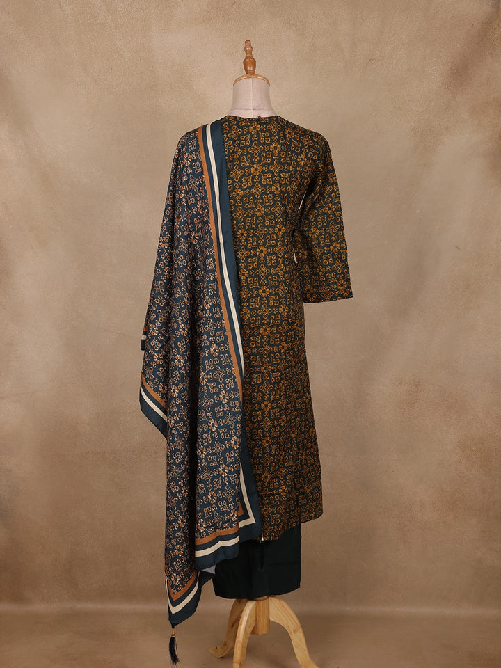 Dark Green Geometric Printed Cotton Salwar Suit with Dupatta