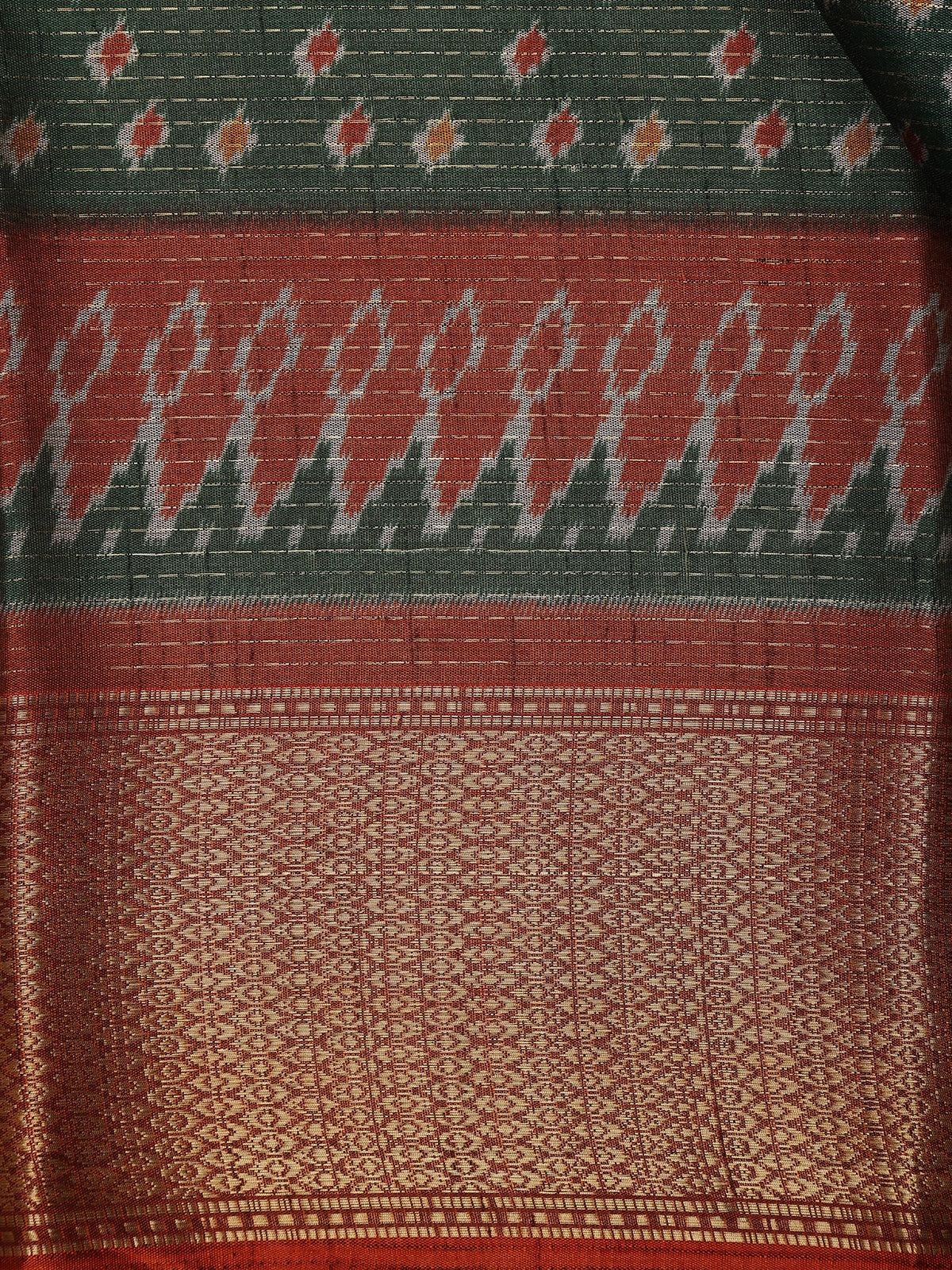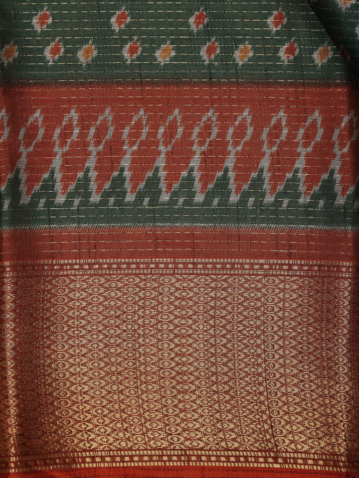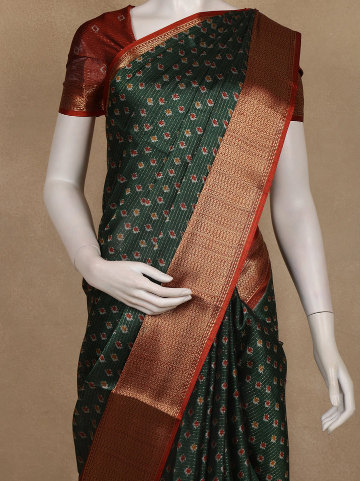 Dark Green Pochampally Ikat Design Cotton Saree with Zari Border