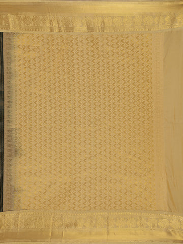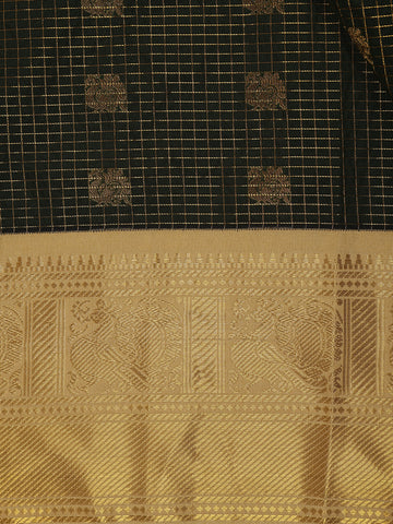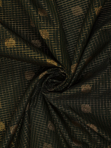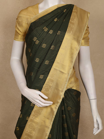 Dark Green Small Butta Woven Design Art Silk Saree with Contrast Golden Zari Border