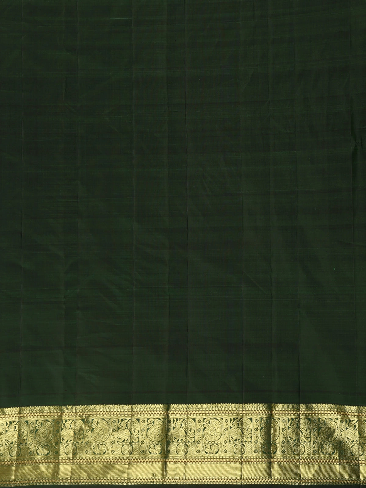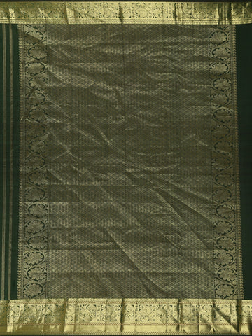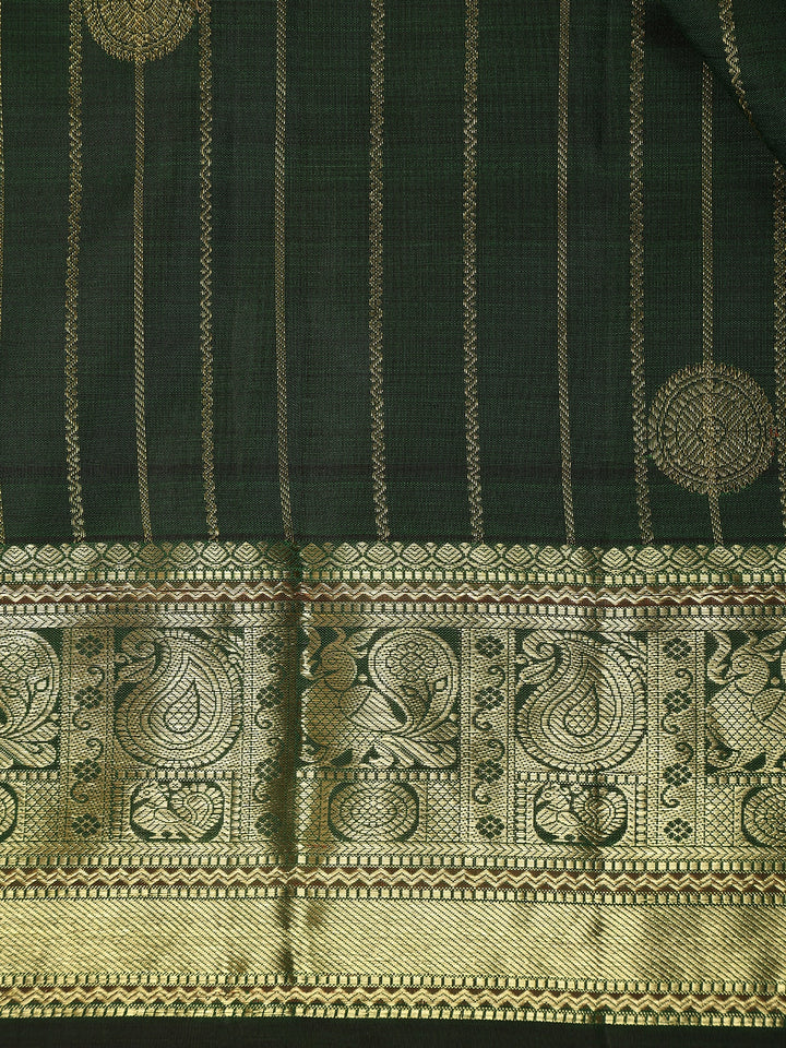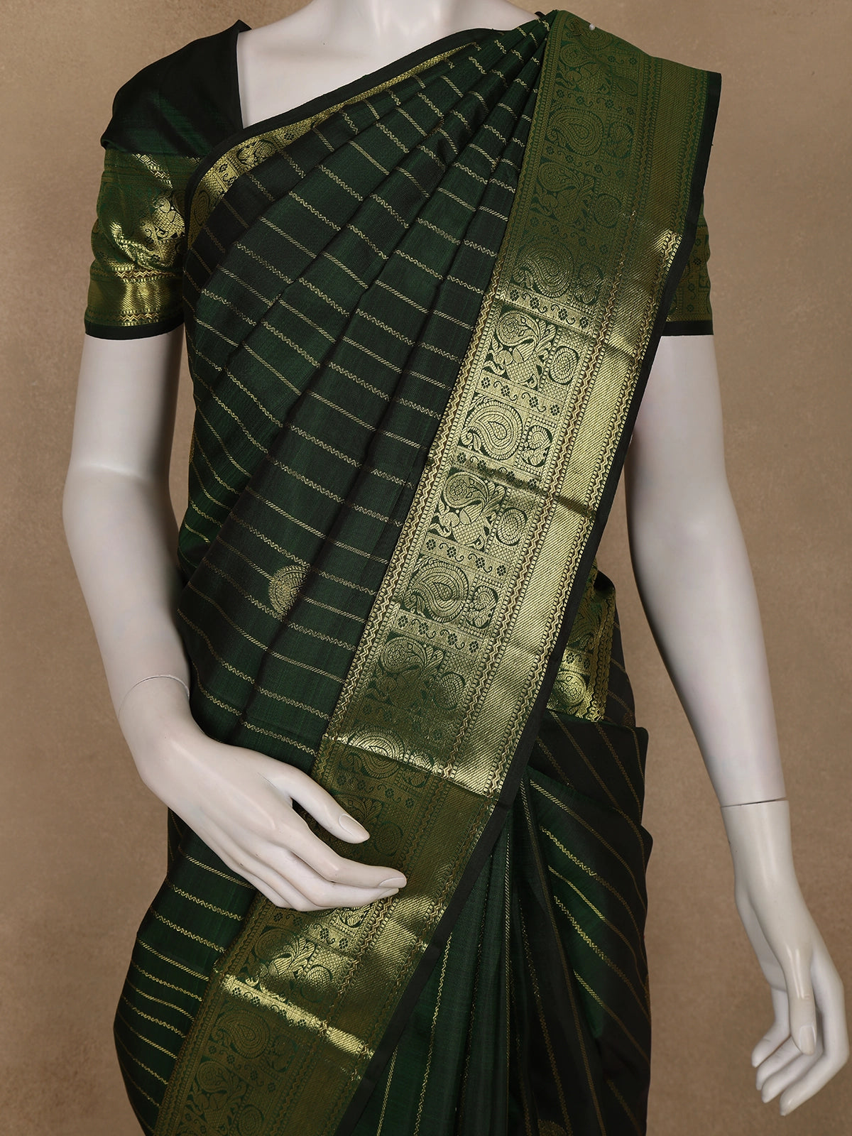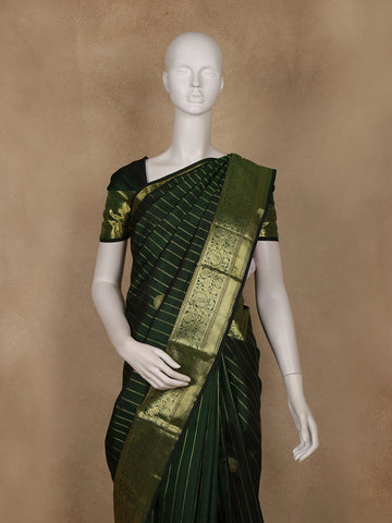 Dark Green Stripes Woven Pure Kanchipuram Silk Saree