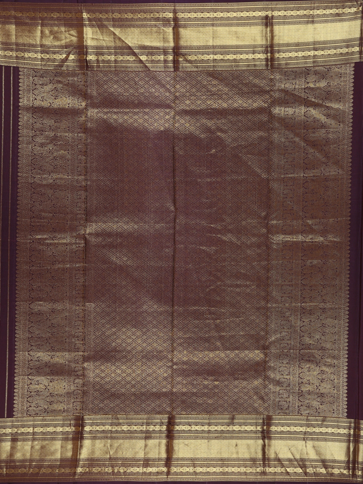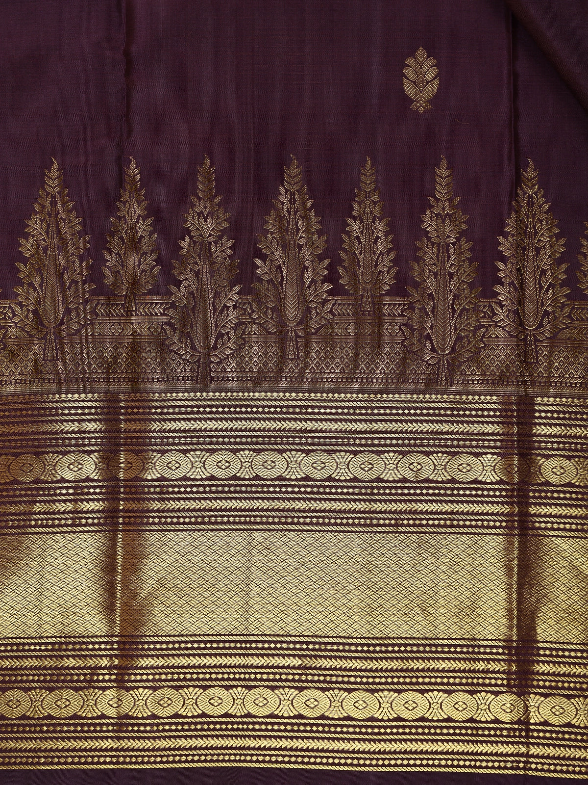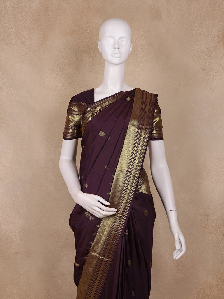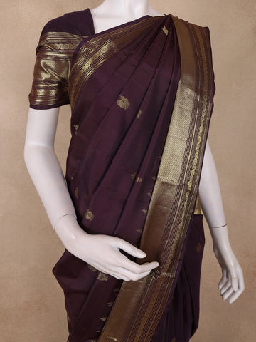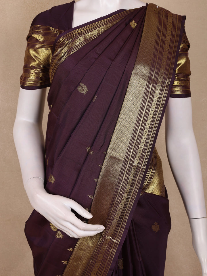 Dark Purple Peacock Butta Woven Design Pure Kanchipuram Silk Saree