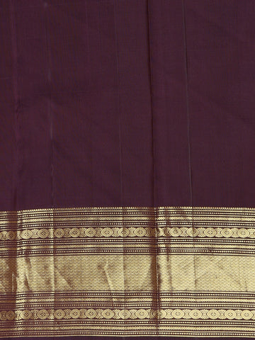 Embrace the timeless beauty of South Indian artistry with this Dark Purple Peacock Butta Woven Pure Kanchipuram Silk Saree. Crafted from the finest quality silk, this saree embodies heritage and elegance in every drape. The deep purple hue exudes royal sophistication, while the intricately woven peacock butta motifs across the body highlight the craftsmanship of traditional Kanchipuram weaving.