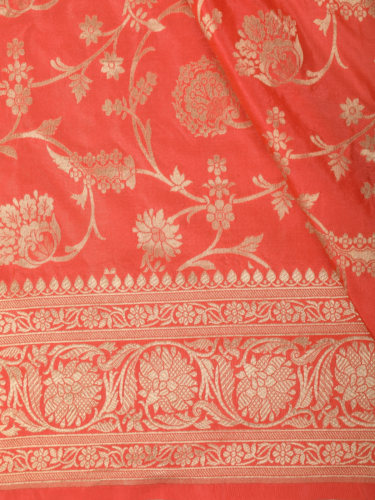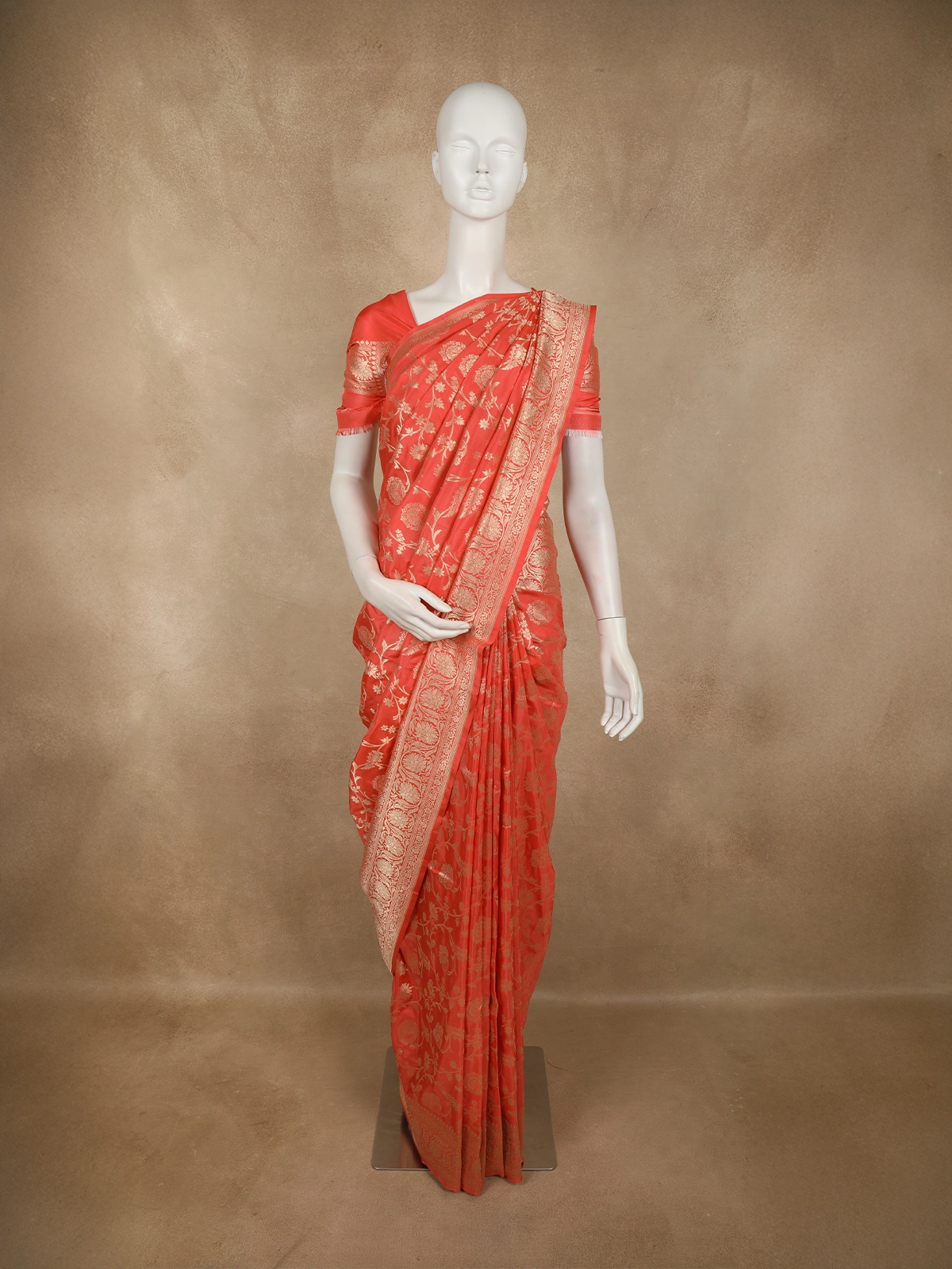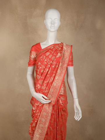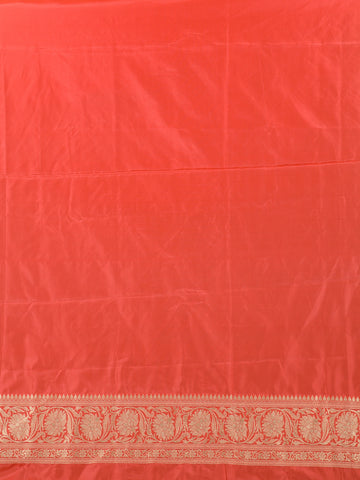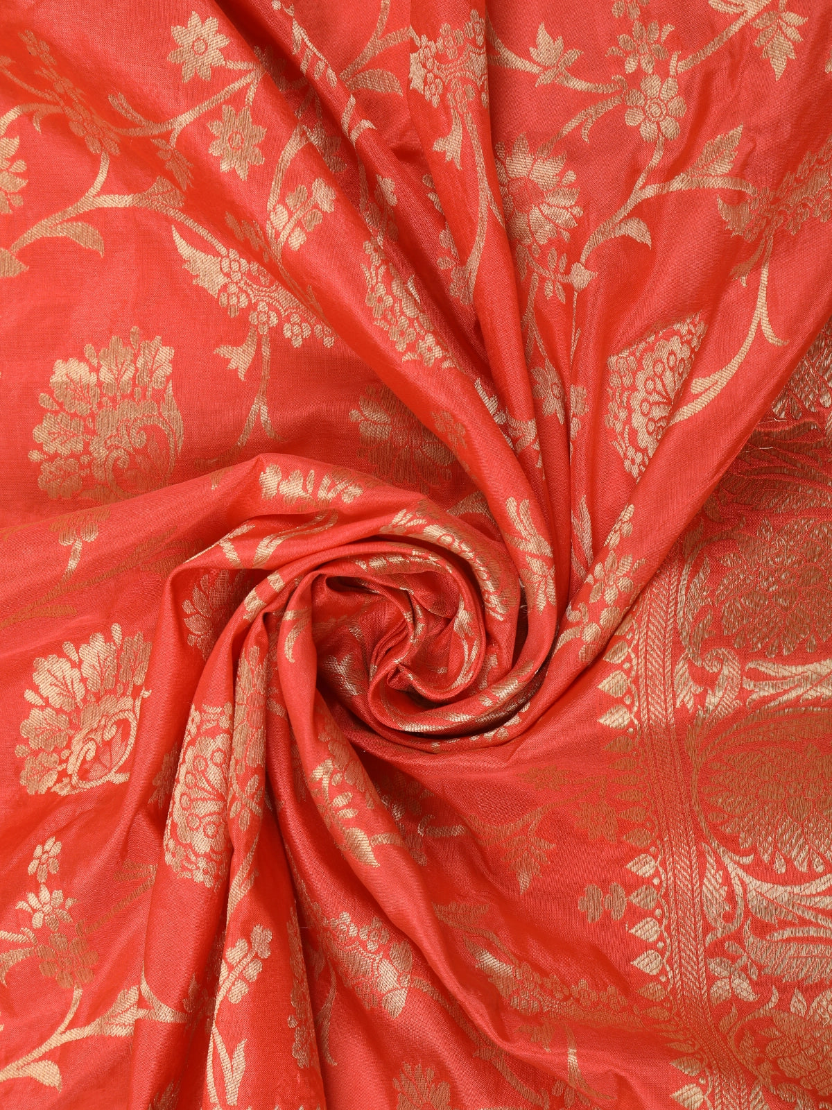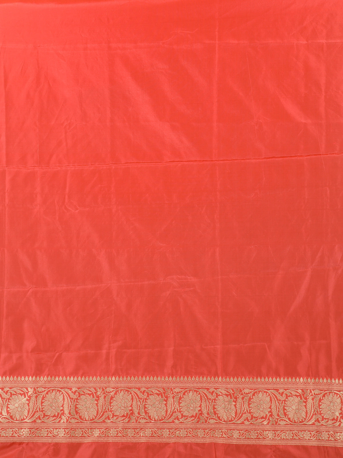 Dark Peach Floral Zari Woven Design Pure Banarasi Silk Saree with Zari Border