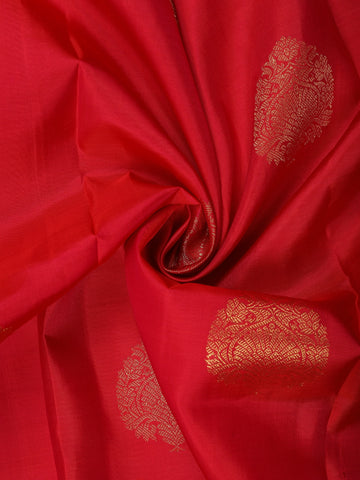Make a striking traditional statement with this Dark Pink Butta Woven Design Kanchipuram Silk Saree, a beautiful blend of vibrant color and classic South Indian craftsmanship. The saree features a rich dark pink silk body, gracefully adorned with elegant gold zari butta motifs that add a subtle shimmer and timeless charm throughout the drape.