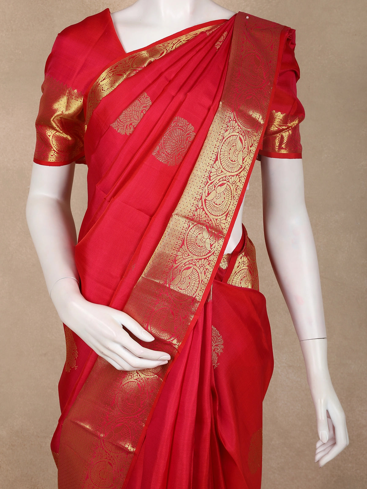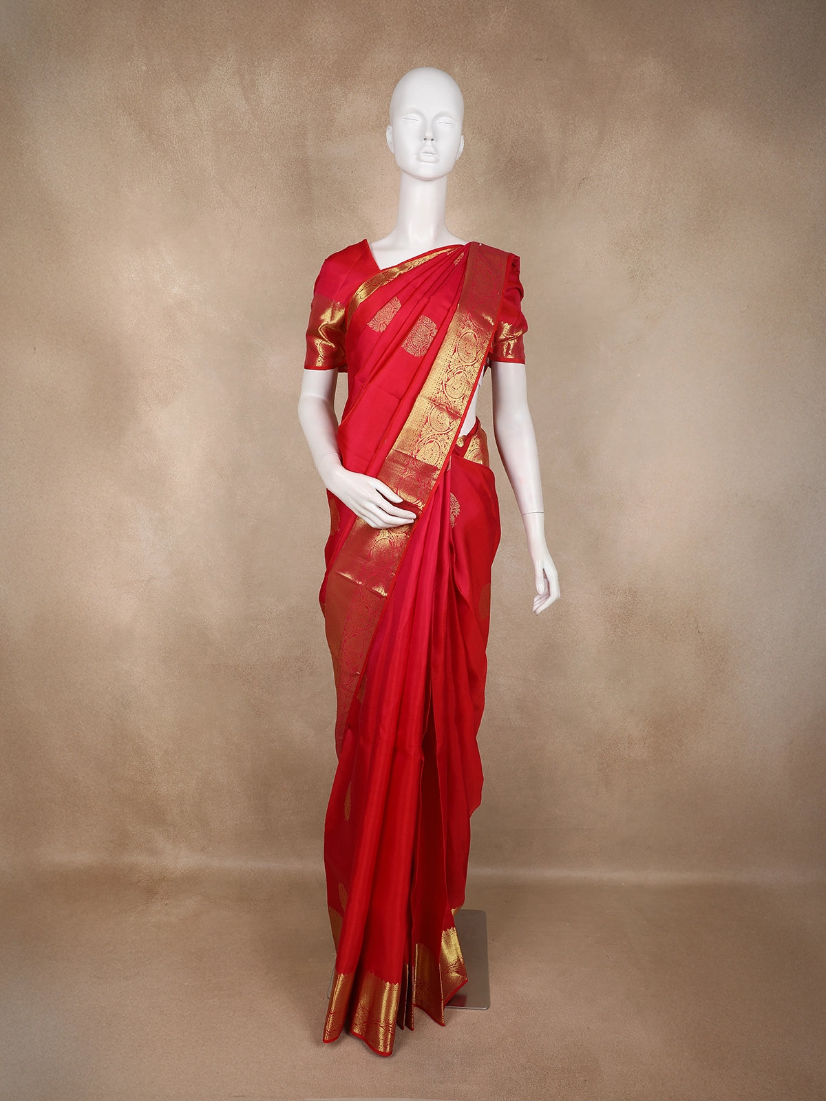 Perfect for weddings, bridal occasions, festive celebrations, and traditional ceremonies, this saree pairs beautifully with gold jewellery for a truly majestic look. A classic heirloom-worthy piece, it is ideal for women who appreciate rich colors, heritage weaving, and enduring elegance.