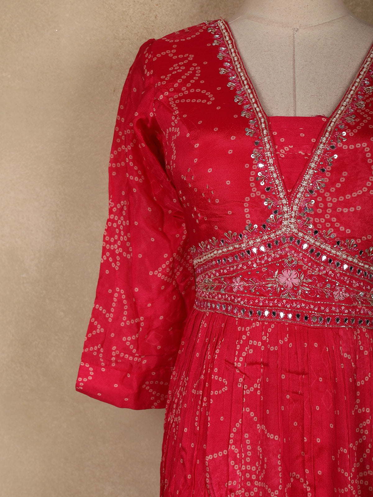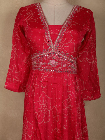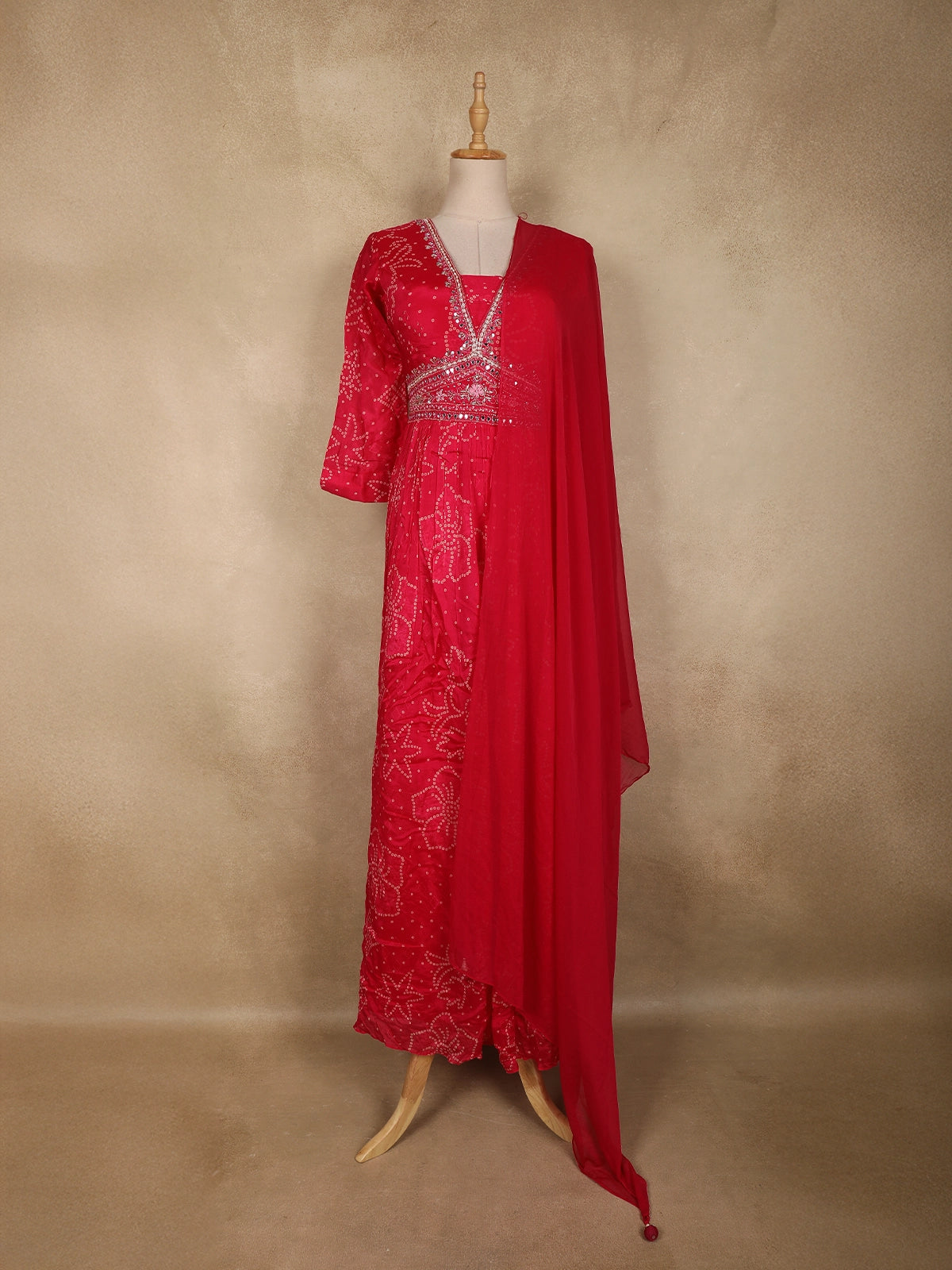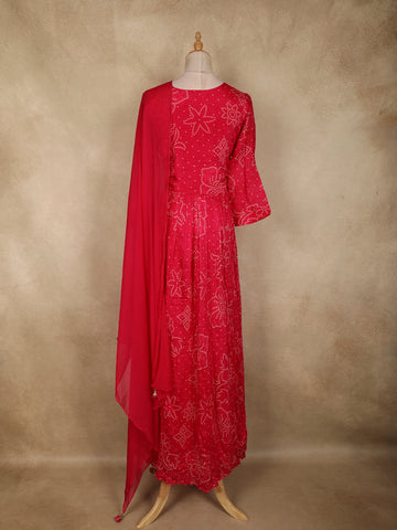 Dark Pink Floral Printed Design Georgette Party Wear Gown with Dupatta