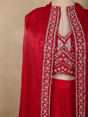 Make a bold and glamorous statement with this stunning Dark Pink Organza Skirt Top with Over Coat, designed to blend contemporary elegance with intricate festive detailing. The ensemble features a rich dark pink hue, radiating vibrancy and sophistication, making it a perfect choice for special occasions and celebratory events.