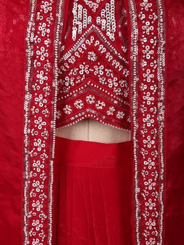 Dark Pink Floral Sequins and Beads Embroidered Design Organza Skirt Top with Over Coat