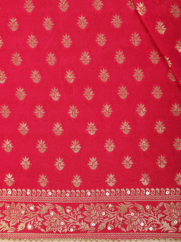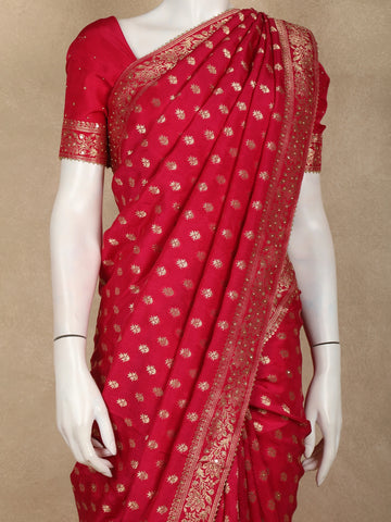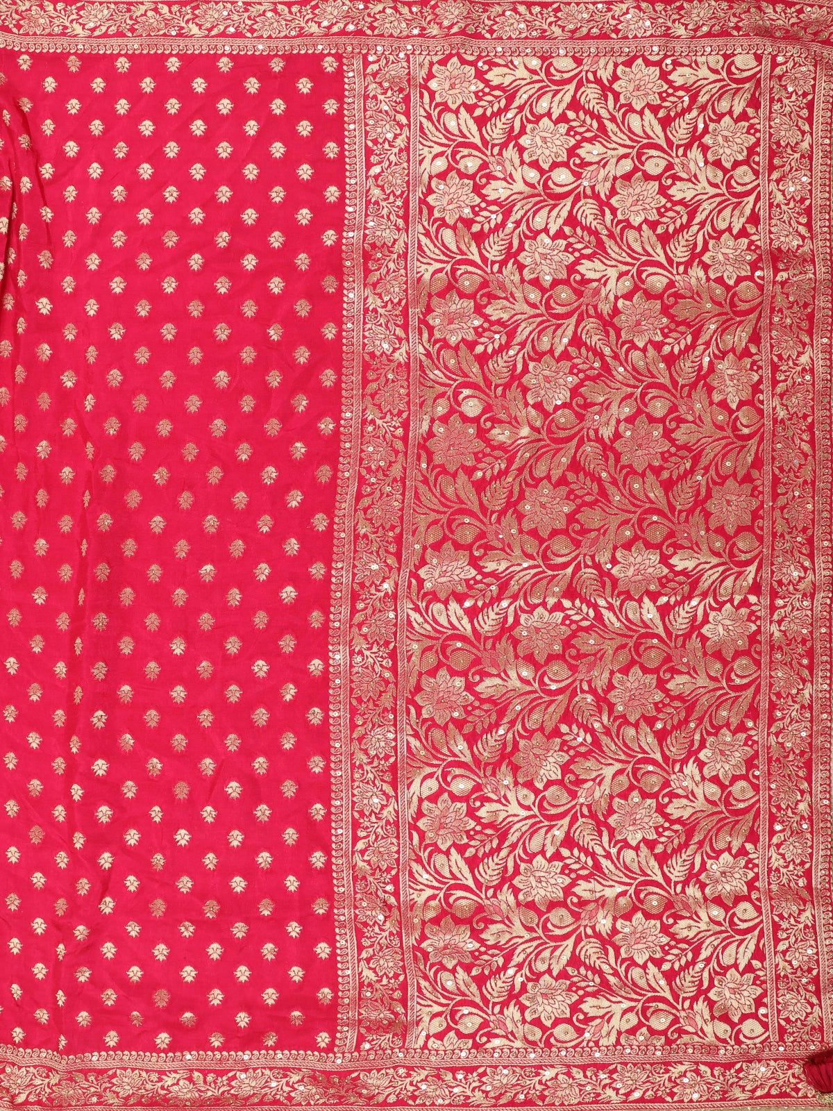 Dark Pink Floral Zari Woven Banarasi Silk Saree with Designer Border