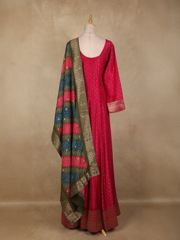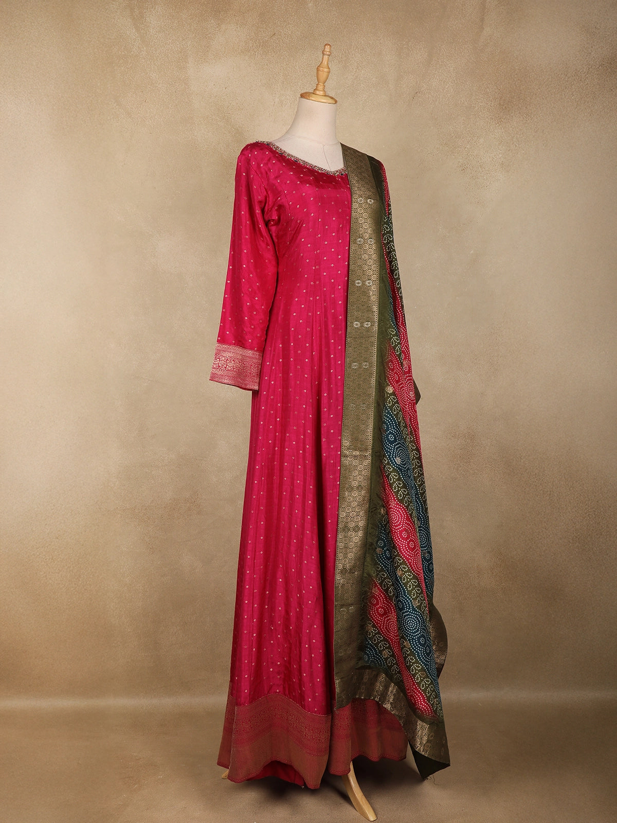 Dark Pink Stone Embellished Design Silk Gown with Multicolor Dupatta